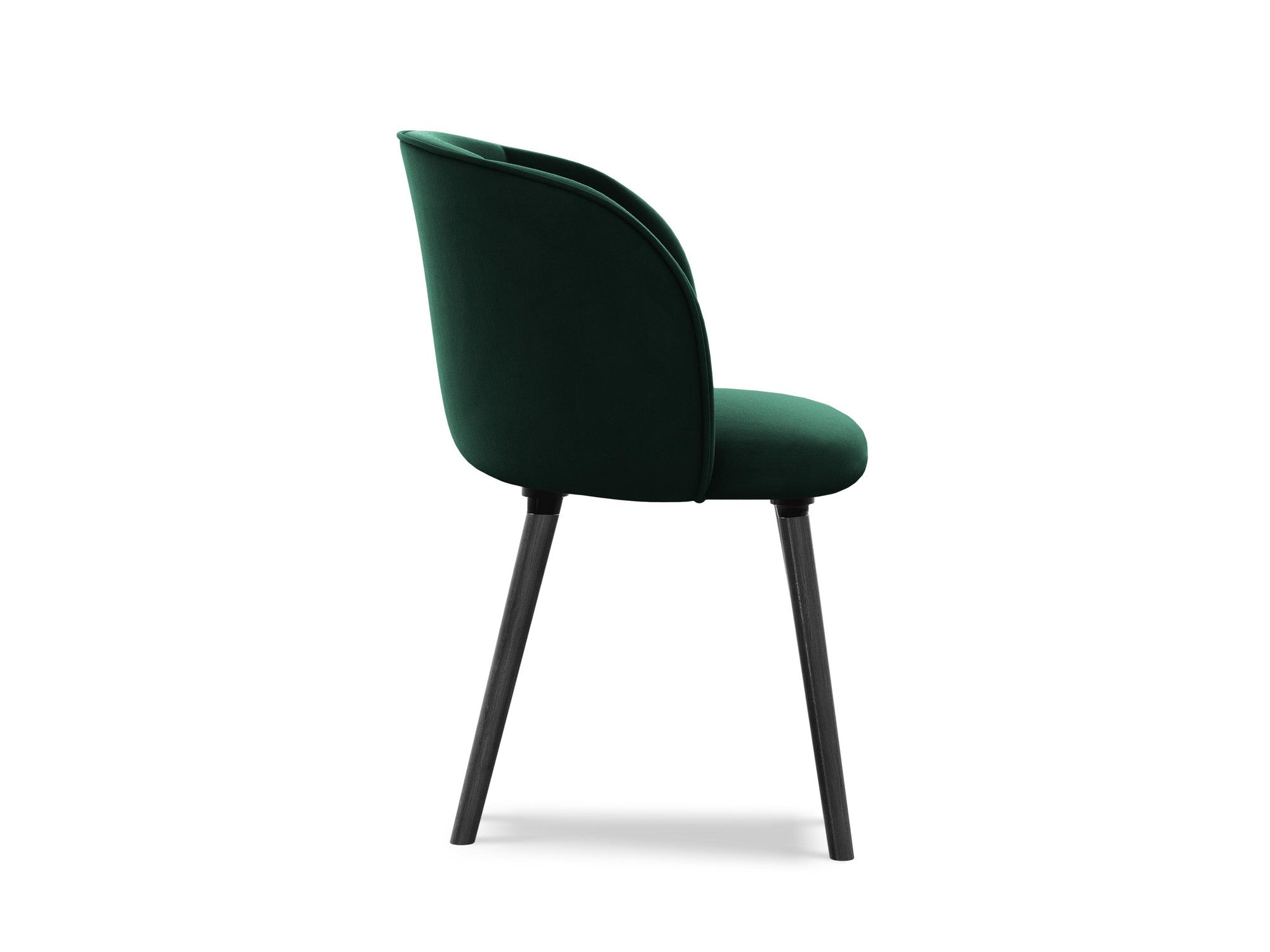 Sametová židle MAIA v lahvově zelené s černou dubovou základnou