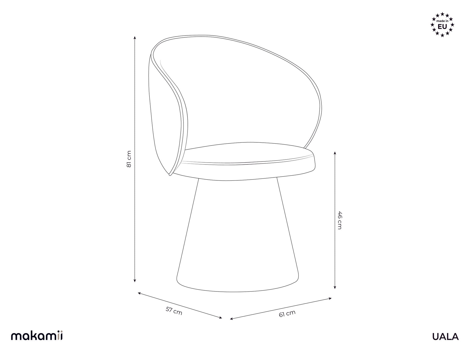 Pevný, čalouněný podstavec v kuželovém tvaru je inspirován klidným rytmem vulkanických krajin ostrovů, dodávající židli výrazný, a přitom teplý charakter. Měkká silueta a přátelská linie činí židli Uala dokonalou v prostorech, kde se design setkává s přírodou — jak v domácích jídelnách, tak v interiérech inspirovaných ostrovní svobodou a rovnováhou.