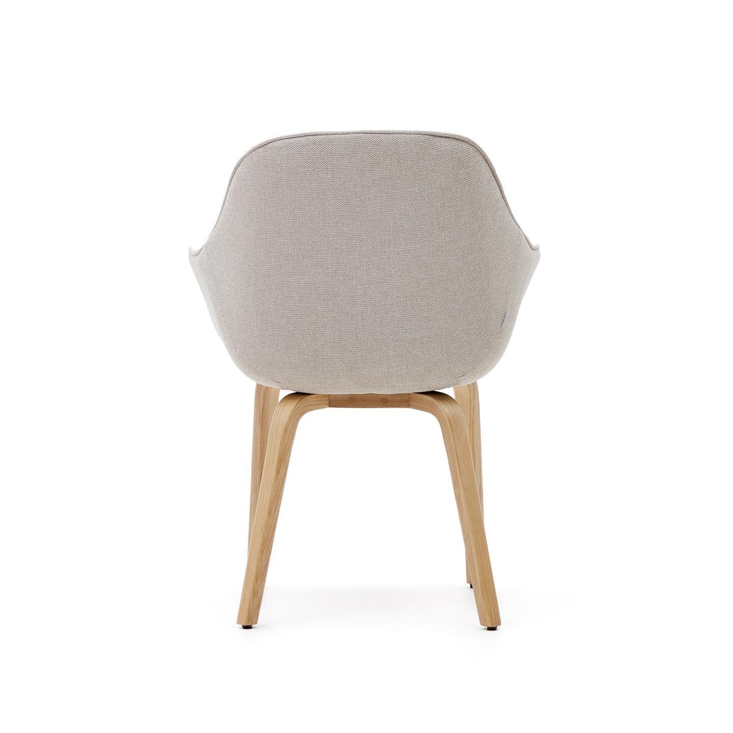 Nohy béžové židle jsou vyrobeny z masivního dřeva s přírodním povrchem, což jí dodává pevnost a trvanlivost. Jejich přirozená barva dokonale harmonizuje s barevností tkaniny, čímž vytváří soudržný a elegantní celek. Výroba designové židle probíhá lokálně v Evropě, s využitím řemeslných procesů, což přispívá k redukci emisí CO2 a pozitivně ovlivňuje životní prostředí. Projektem Kave Cares byla také zahrnuta vnitřní struktura židle, vyrobená z dřeva E0 s nízkými emisemi formaldehydu, což zajišťuje jak komfort používání, tak péči o planetu.