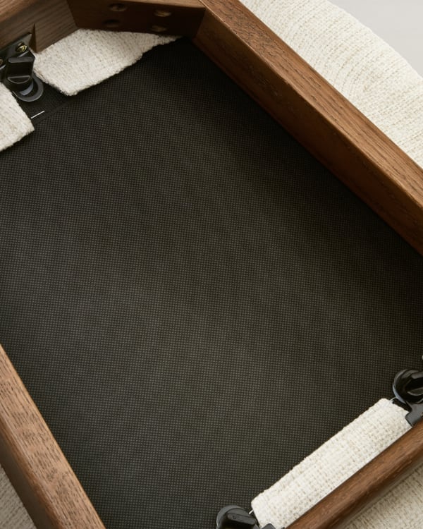 Židle Alocs je elegantní kus nábytku vyrobený z masivního dubového dřeva, dokončený v klasické černé barvě, který do interiéru vnáší moderní styl s nádechem přírodního charakteru. Jeho výjimečnost spočívá v polštáři potaženém šňůrkou, který mu dodává jedinečný vzhled. Sedák židle je odnímatelný, což usnadňuje sundání materiálu a jeho čištění, zajišťující funkčnost a pohodlí.
