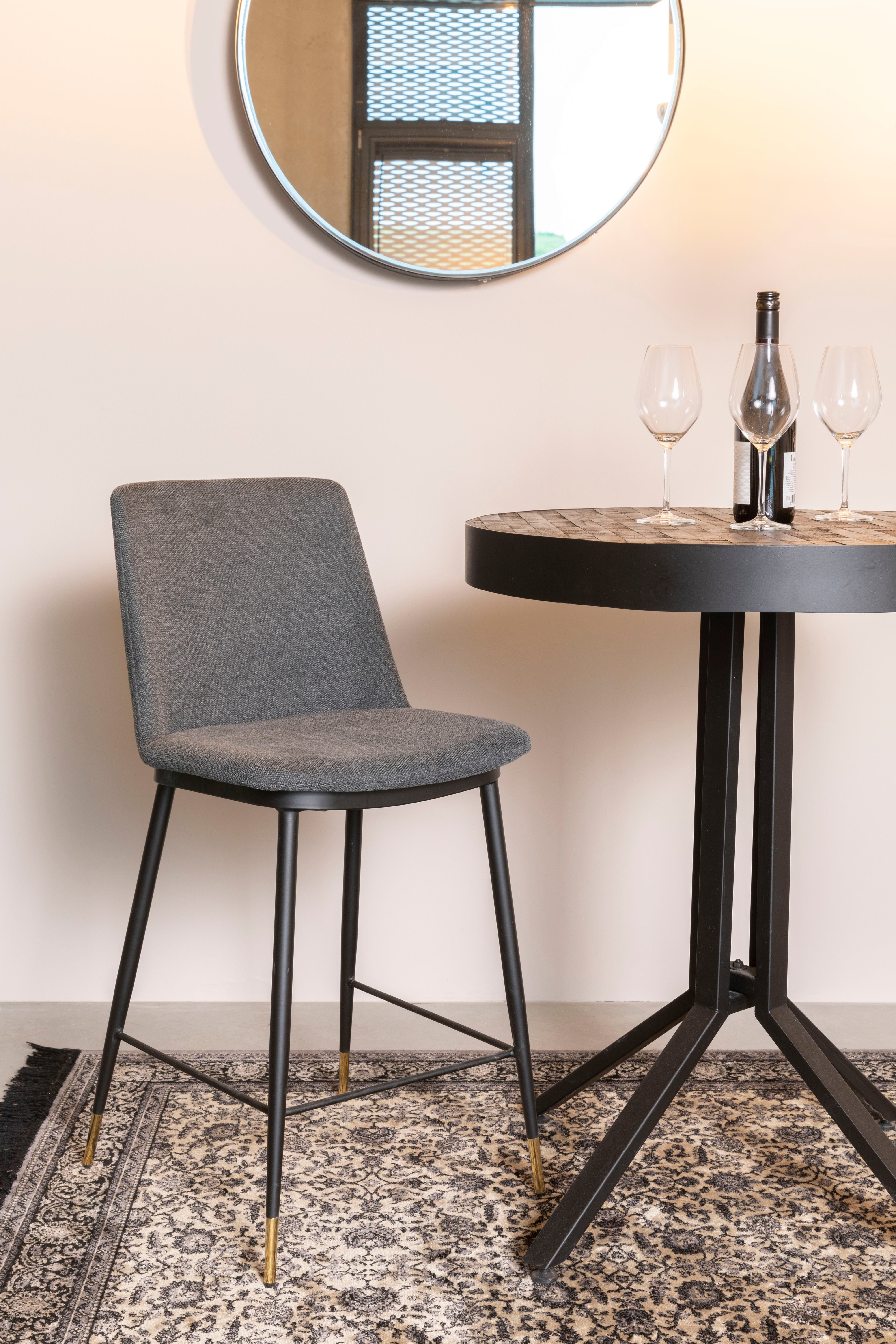 Barová židle Lionel je spojení moderní elegance s rafinovaným stylem, které dodá každému interiéru nádech třídy. Hoker se vyznačuje robustním černým ocelovým podstavcem, jehož jedinečného charakteru dodávají jemné zlaté nožičky. Sedák a opěradlo židle jsou potaženy tmavě šedou tkaninou, která nábytku propůjčuje elegantní a univerzální vzhled, ideálně se hodící k různorodým aranžmá interiérů. Barová židle Lionel je vynikající volbou do kuchyně, jídelny nebo baru, přinášející do prostoru jedinečný styl a komfort.