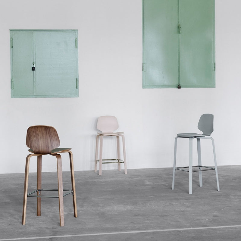 Toto moderní barové křeslo od Nicholaia Wiiga Hansena spojuje minimalistickou estetiku s ergonomickým komfortem. Vyrobeno z tvarované překližky, jemně se přizpůsobuje pohybům těla, což zajišťuje pohodlí i při dlouhém sezení. Jeho jednoduchá, harmonická forma byla zmírněna zaoblenými rohy a jemně profilovaným pasem, což mu dodává teplý a přátelský vzhled.