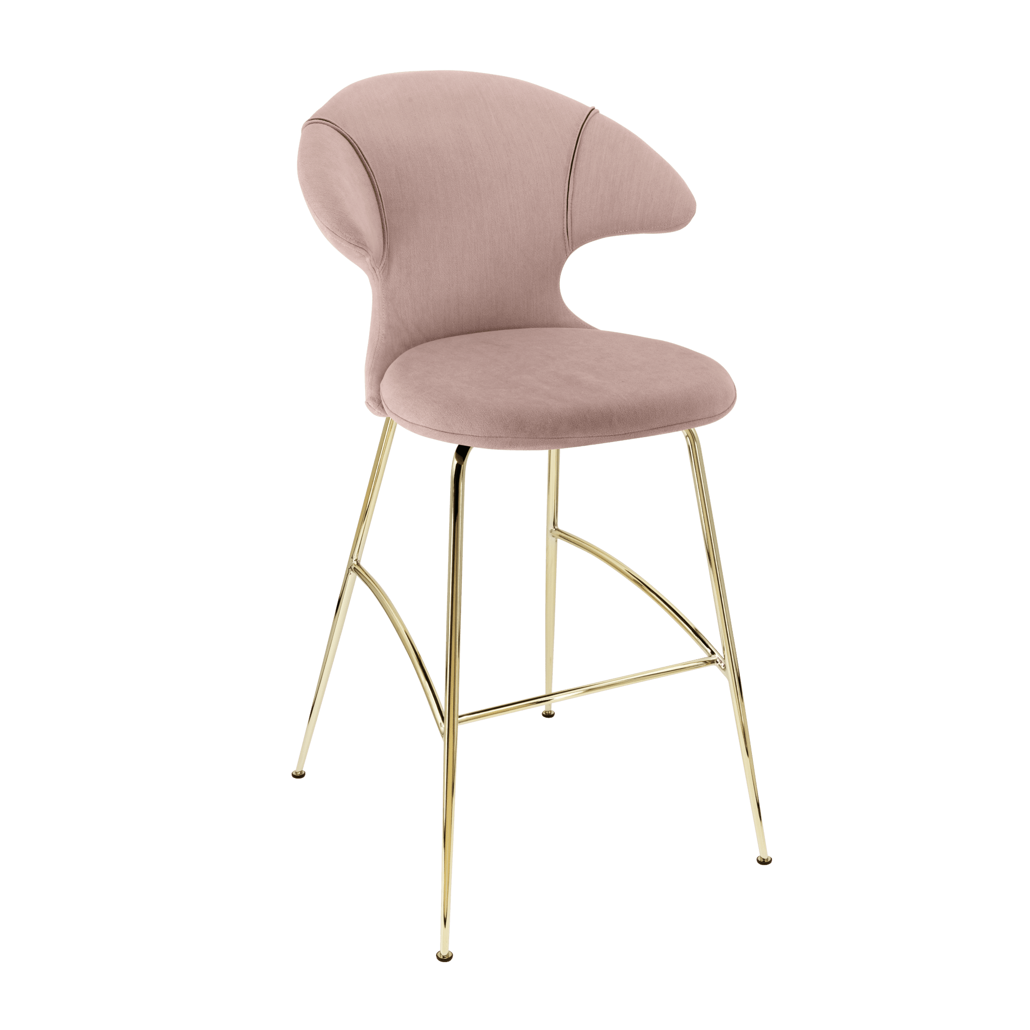 Barová židle TIME FLIES pudrově růžová se zlatým podstavcem