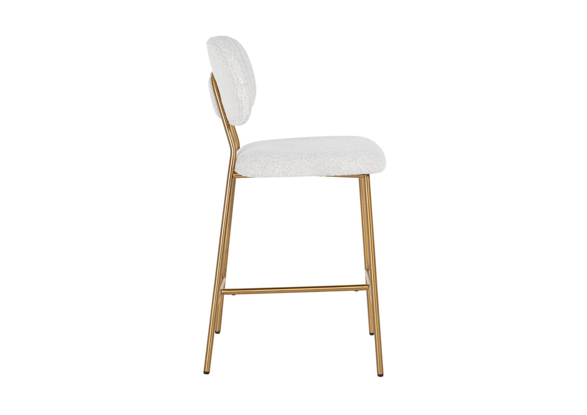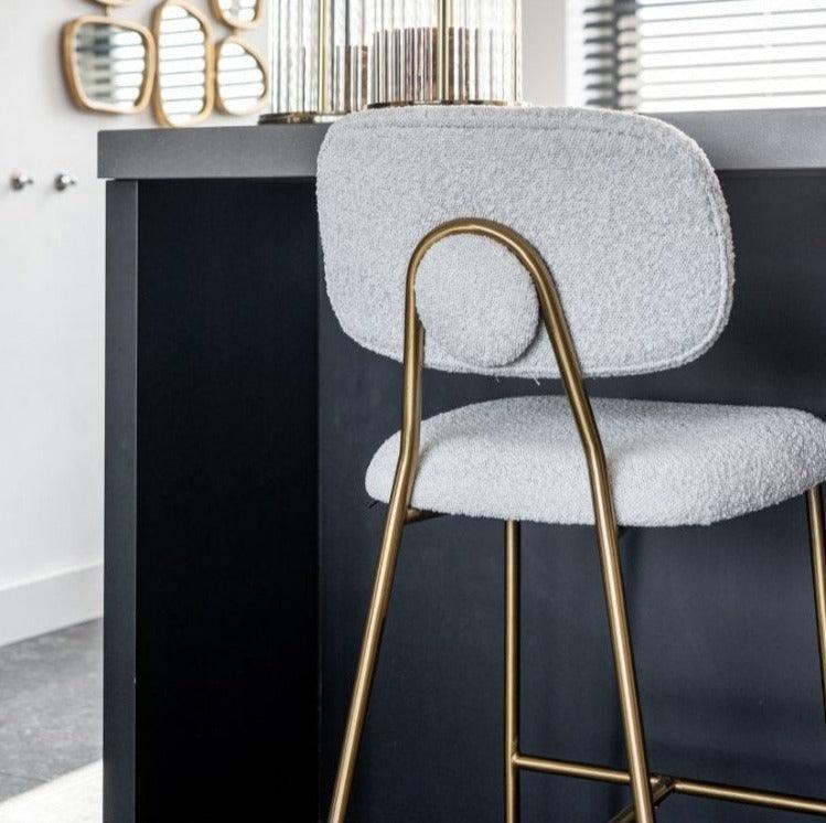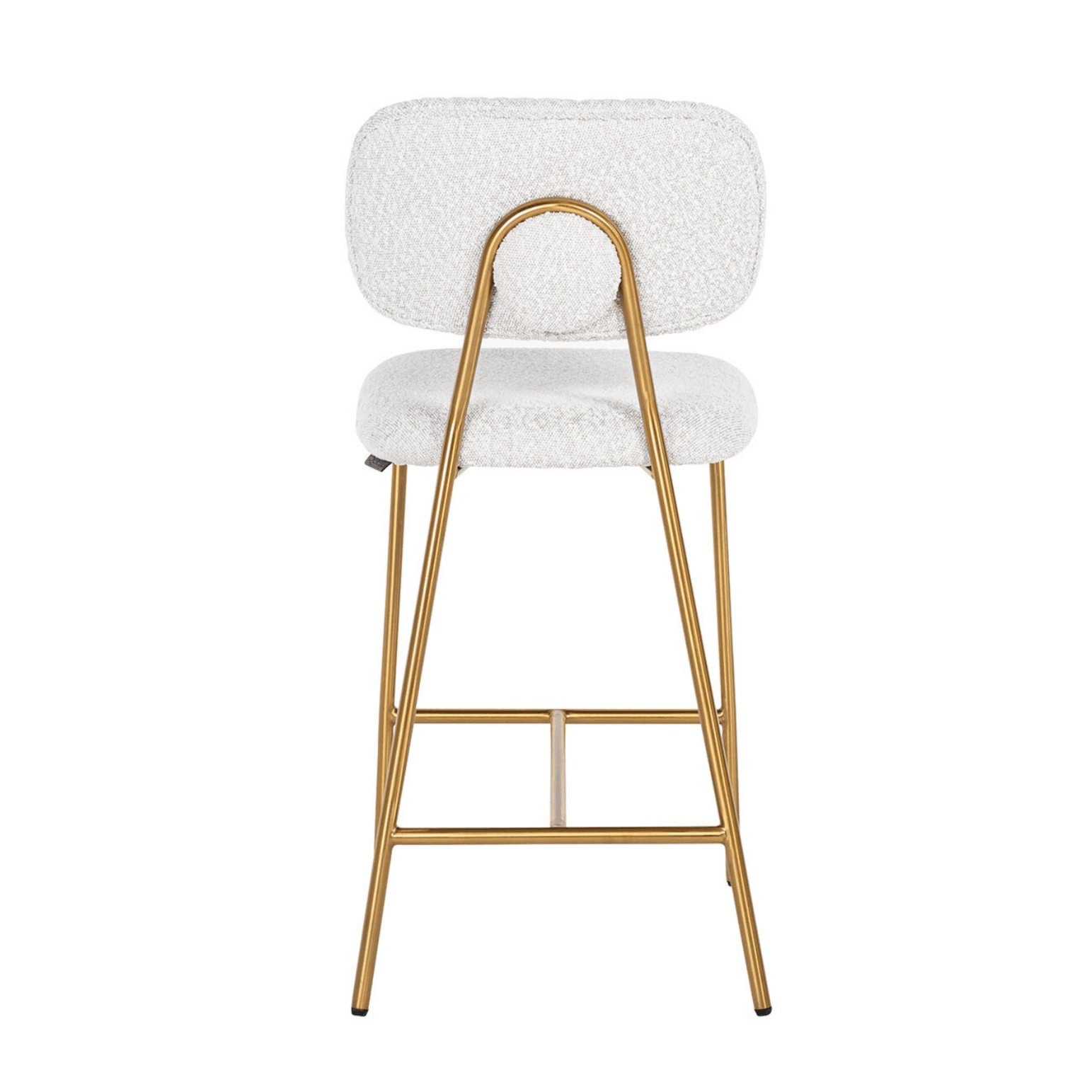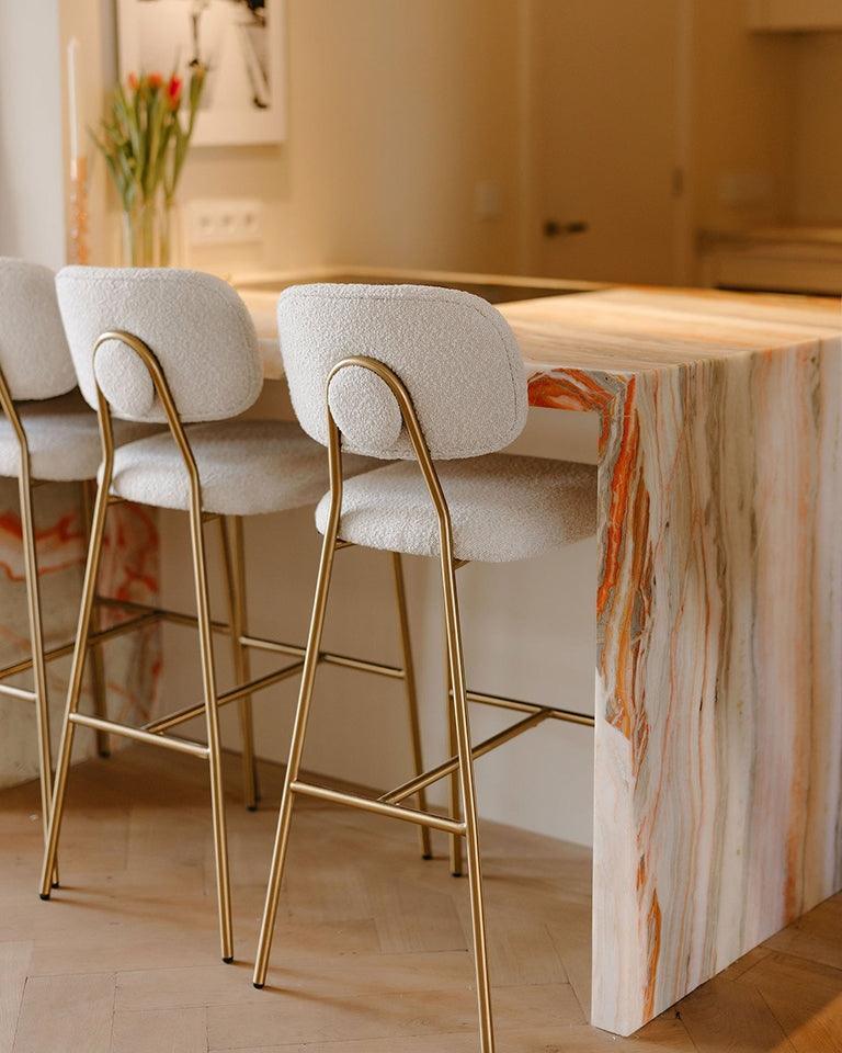Barová židle Xenia je výjimečný kus nábytku, který upoutá pozornost všech milovníků stylu glamour. Její charakteristické opěradlo, zdobené výraznými prošíváními, a čalounění sedáku vyrobené z elegantní tkaniny typu bouclé v bílé barvě jí dodávají neobyčejné kouzlo.
