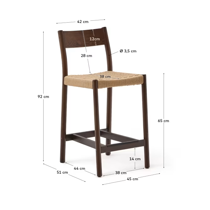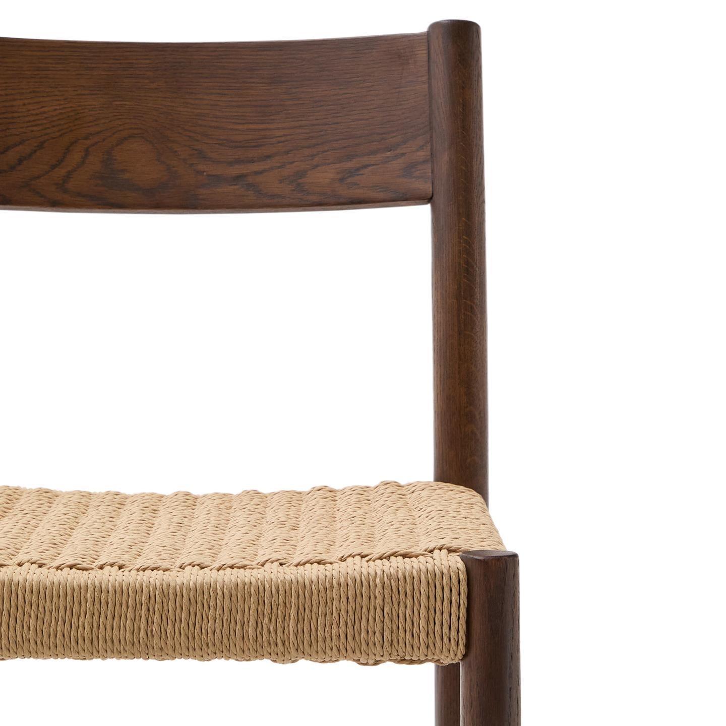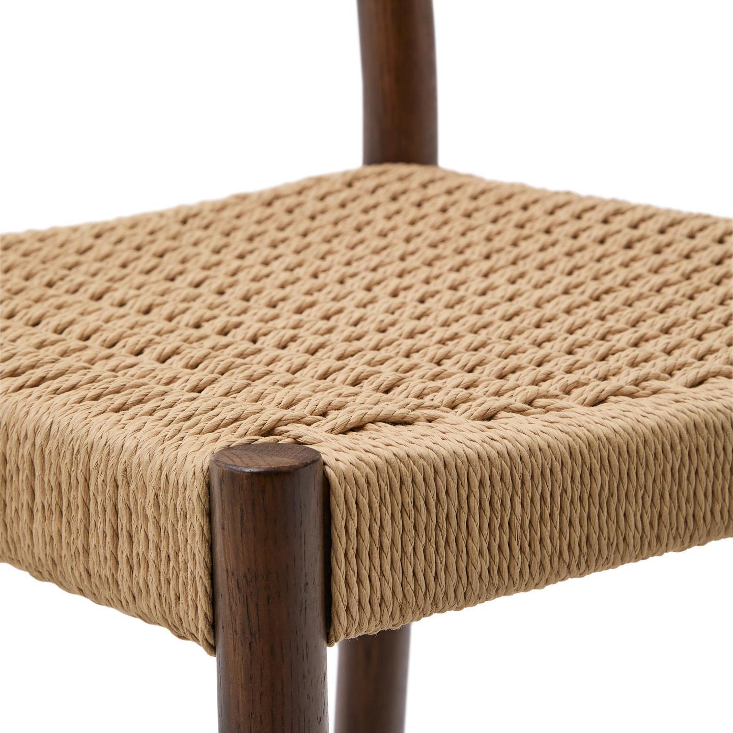 Wyjątkowość orzechowego krzesła Yalia nie kończy się na jego konstrukcji. Siedzisko wykonane z ręcznie plecionej liny papierowej to nie tylko wyraz rzemieślniczej precyzji, ale również zapewnia niezrównany komfort użytkowania. Każde krzesło jest starannie wykończone, podkreślając jego naturalne piękno i wyjątkowy charakter.