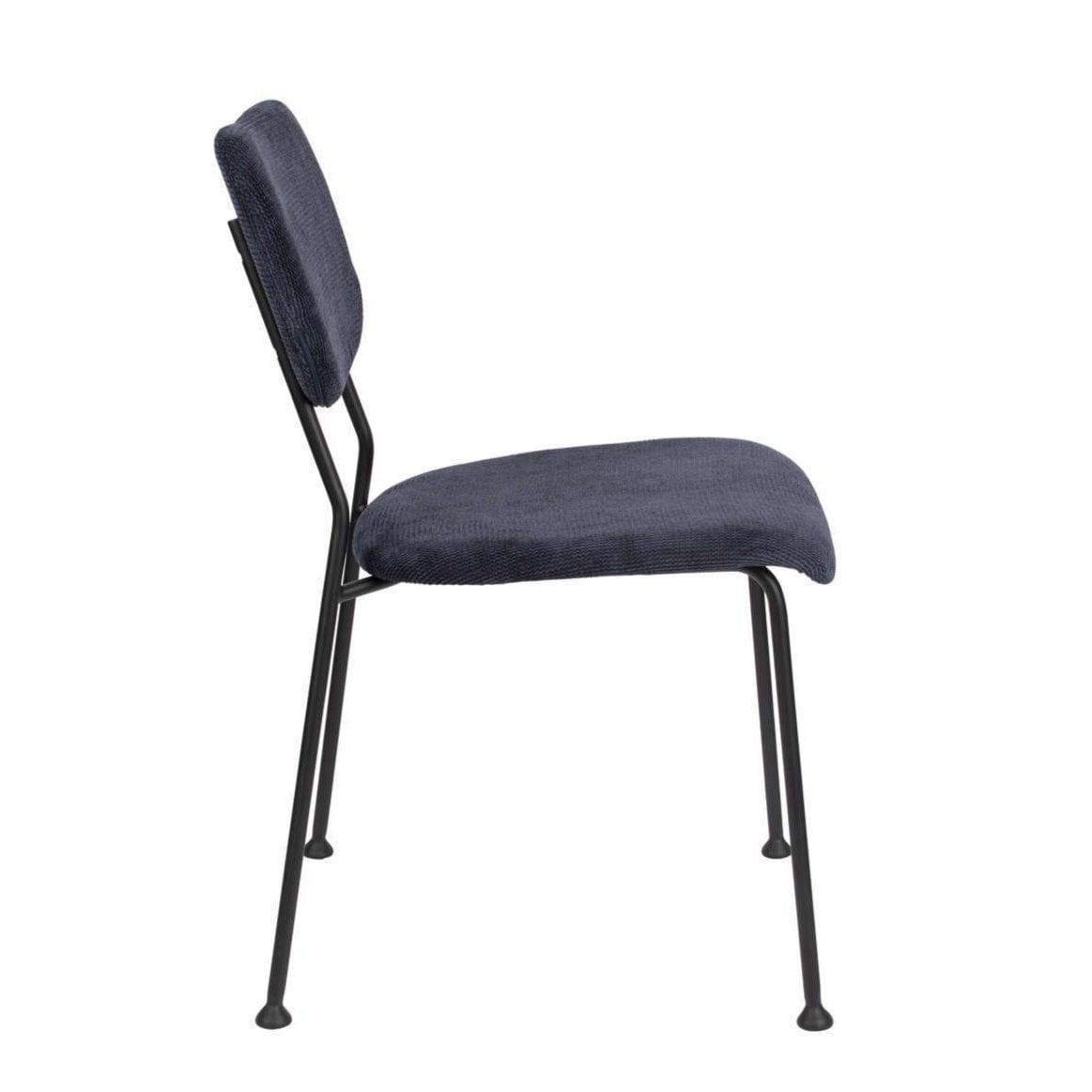Židle Benson je univerzální model, který se hodí do mnoha aranžmá. Krásný, tmavě modrý odstín v kombinaci s židlemi v jiných barvách může vytvořit eklektickou a pozornost přitahující soupravu v domácí jídelně.