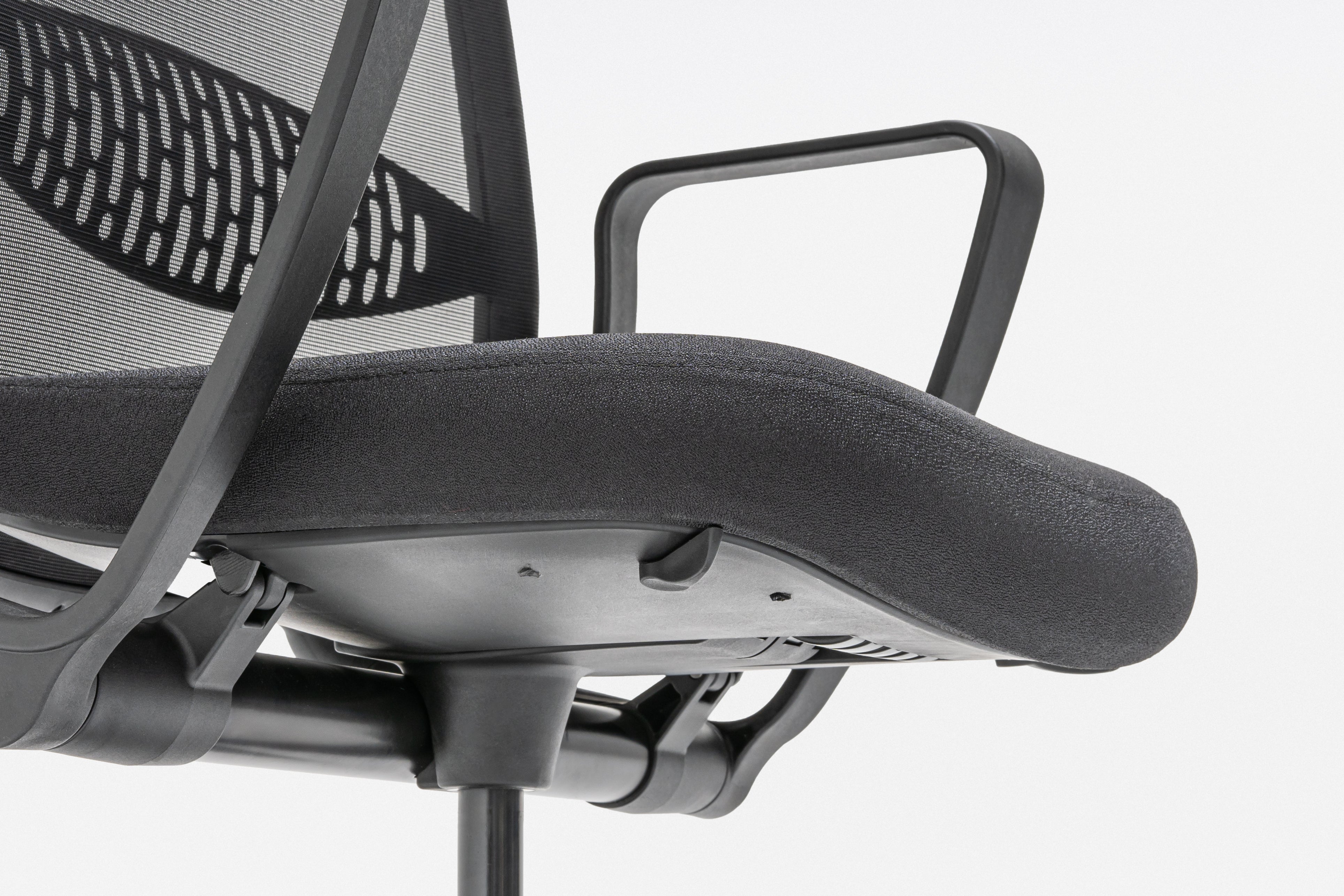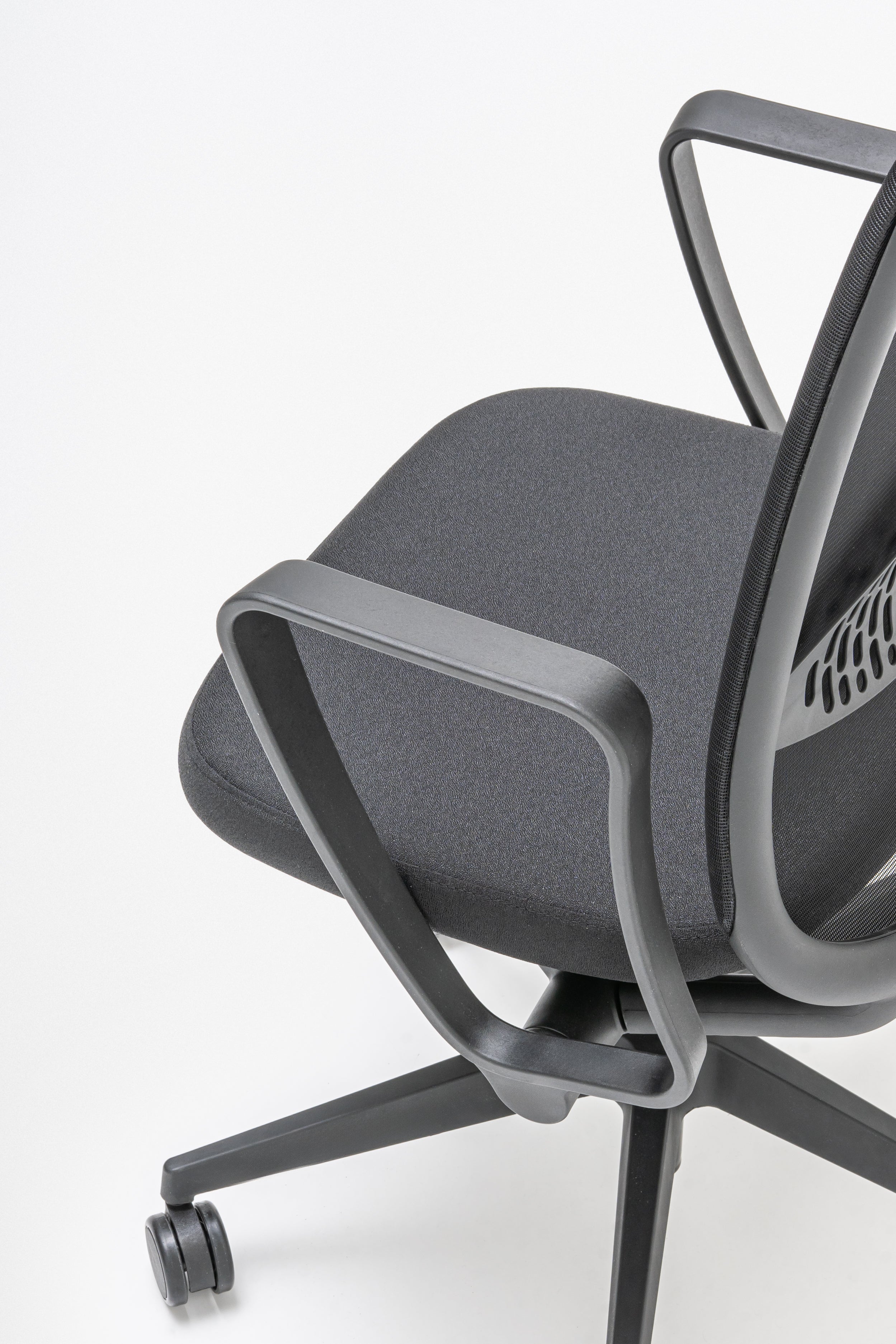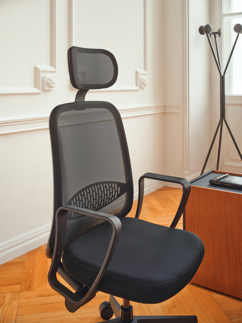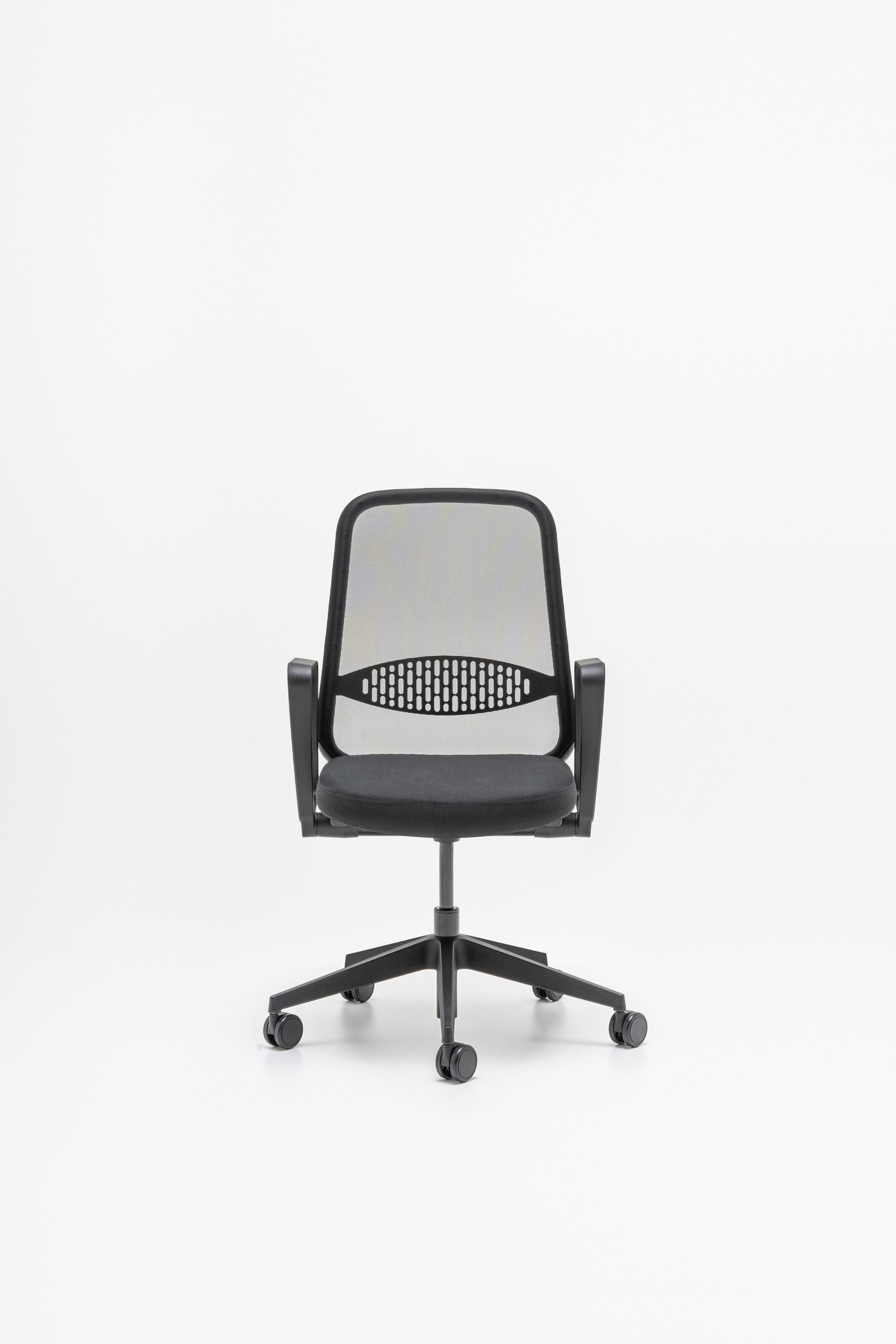 Pracovní židle Astro je klíčovým prvkem pohodlného pracovního místa, které redefinuje ergonomii a estetiku. Její charakteristická točná tyč a otočné sedadlo s nastavitelnou výškou a kolečky zajišťují snadný pohyb a vstávání. Mřížkované opěradlo s integrovanou bederní oporou podporuje záda, zlepšuje cirkulaci vzduchu a zaručuje komfort po celý pracovní den. Astro umožňuje přizpůsobení individuálním preferencím uživatele, podporuje dynamickou a zdravou polohu sezení.
