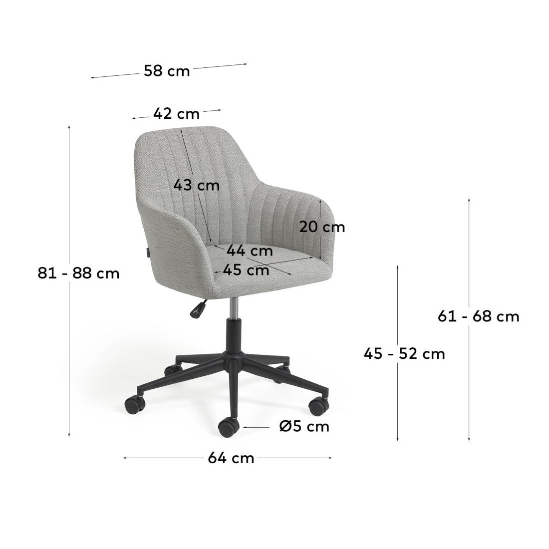 Díky minimalistickému designu a neutrální jasně šedé barvě se židle Madina skvěle hodí do každé kanceláře, pracovny nebo pracovního prostoru, přidávajíc mu eleganci a profesionální vzhled. Vyberte si židli Madina a postarejte se o své pohodlí a efektivitu práce každý den.