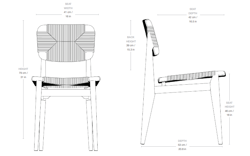 Solidna konstrukcja oparta na masywnych, drewnianych nogach kontrastuje z lekkim, wizualnie subtelnym siedziskiem, co nadaje całości wyważony i nowoczesny charakter. Krzesło C-Chair urzeka minimalistyczną estetyką oraz kunsztownym wykonaniem z wysokiej jakości drewna, czyniąc je ponadczasowym elementem wyposażenia wnętrz.