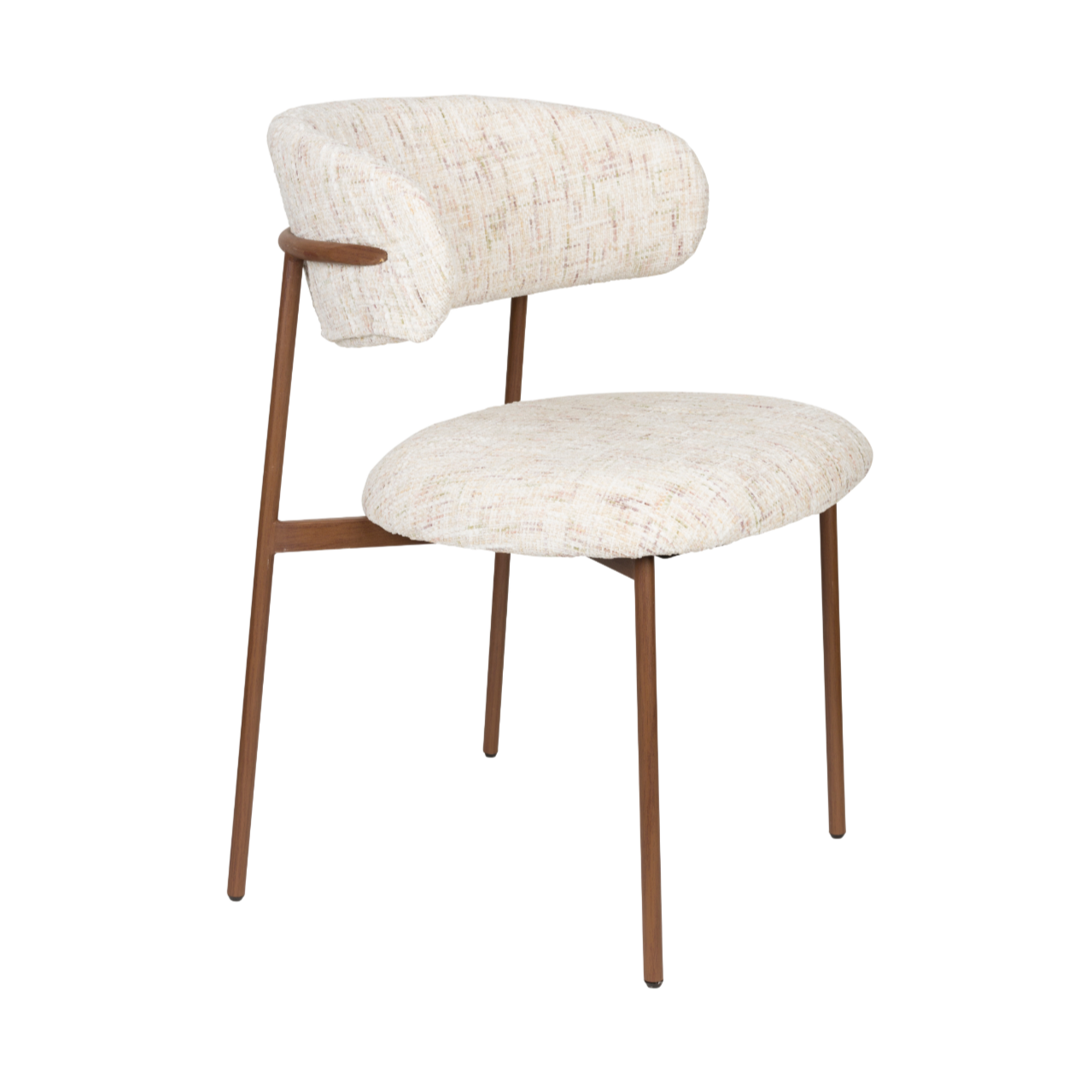 Stylové křeslo Claes s moderním designem je ideální kombinací pohodlí a elegance. Měkké, čalouněné sedadlo a ergonomické opěradlo zajišťují komfort při každodenním používání, zatímco jemný bílý odstín látky vnáší do interiéru útulnou a teplou atmosféru. Jednoduchá forma v kombinaci s kovovým podstavcem v barvě dřeva skvěle ladí s interiéry v moderním, skandinávském a minimalistickém stylu.