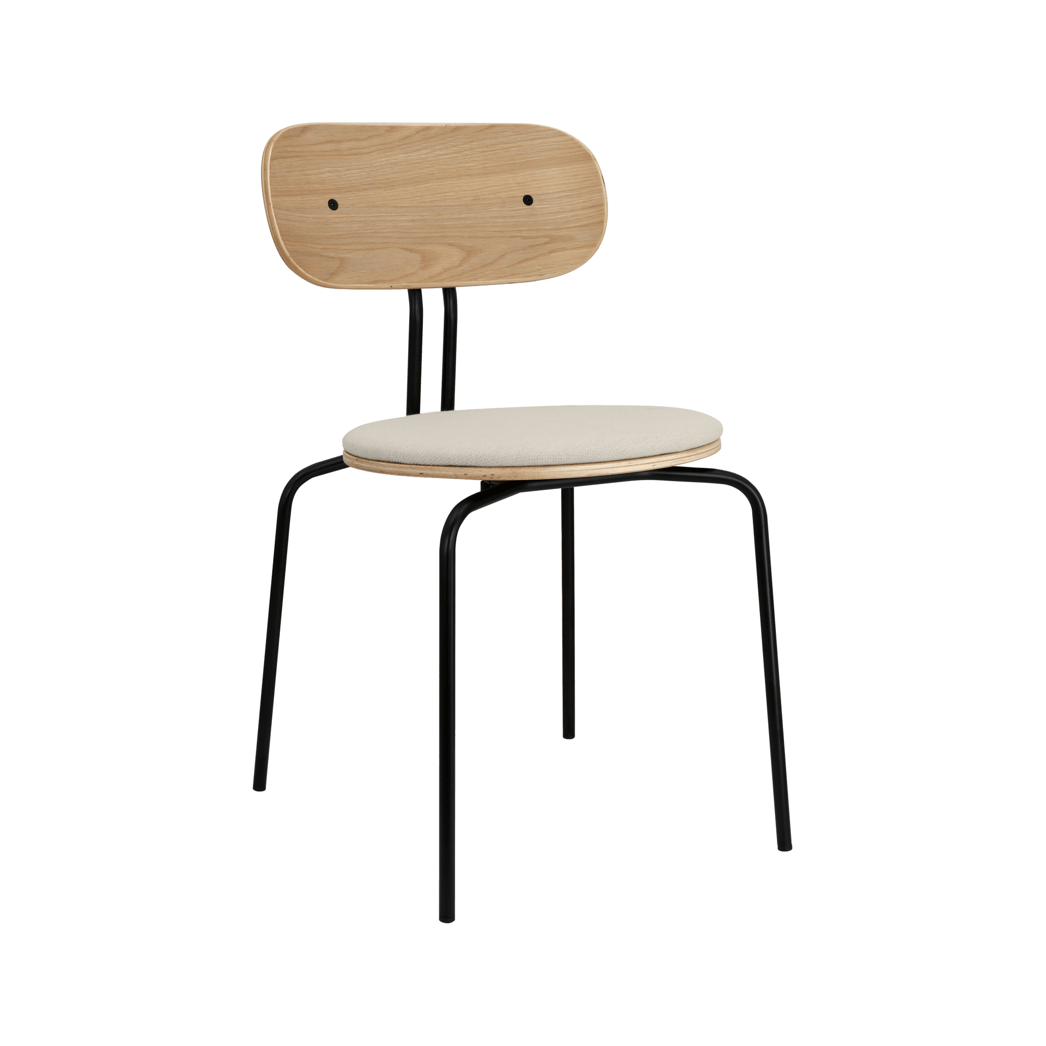 Židle Curious je elegantní, lehký a minimalistický nábytek, vyrobený z dubové dýhy. Je k dispozici s mosaznými nebo černými nohami, a volitelný sedák poskytuje dodateční komfort. Můžete si vybrat polštář z 17 barev tkaniny Horizons, vyrobené ze 100% recyklovaných materiálů, stejně jako v hnědém nebo bílém odstínu tkaniny Teddy Bear.