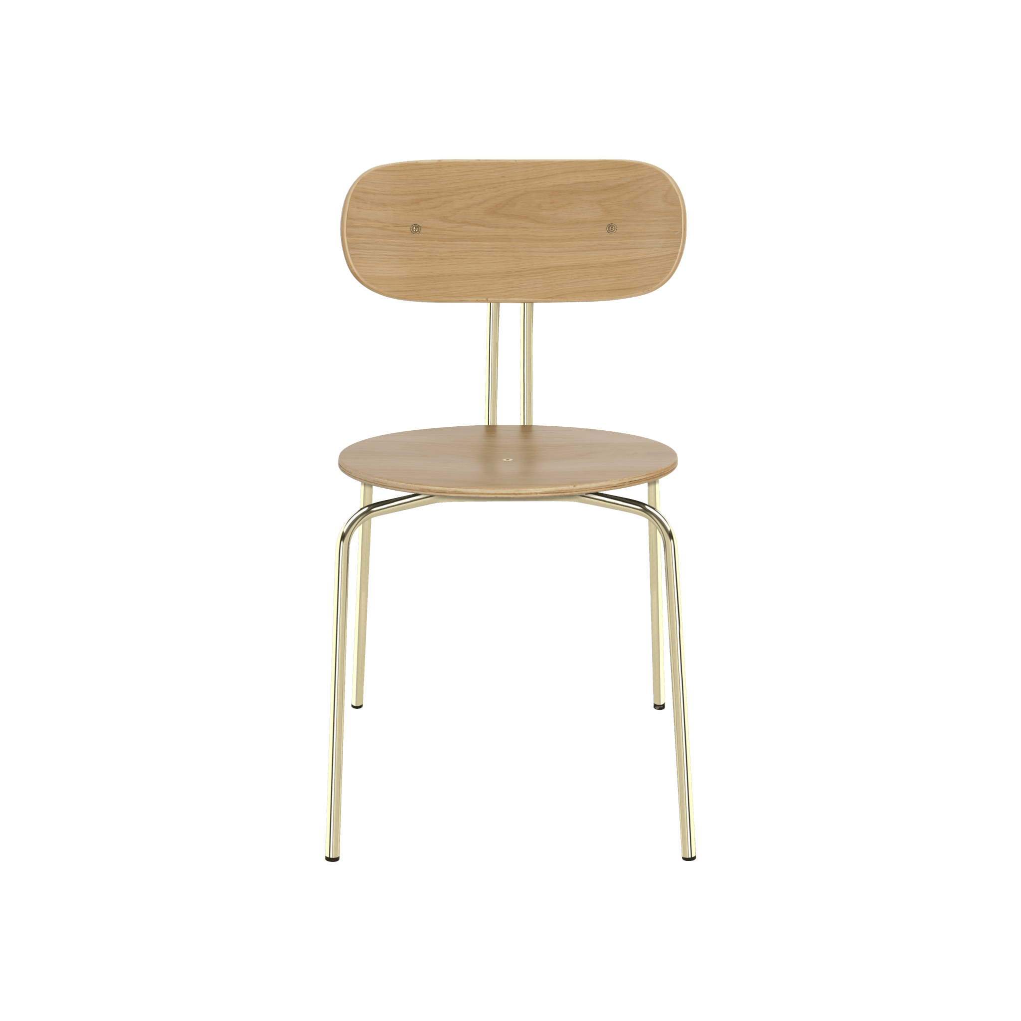 Židle Curious je elegantní, lehký a minimalistický nábytek, vyrobený z dubového dýhování. Je k dispozici s mosaznými nebo černými nohami, a volitelný sedák poskytuje dodateční komfort. Můžete si vybrat polštář z 17 barev tkaniny Horizons, vyrobené ze 100% recyklovaných materiálů, stejně jako v hnědém nebo bílém odstínu tkaniny Teddy Bear.