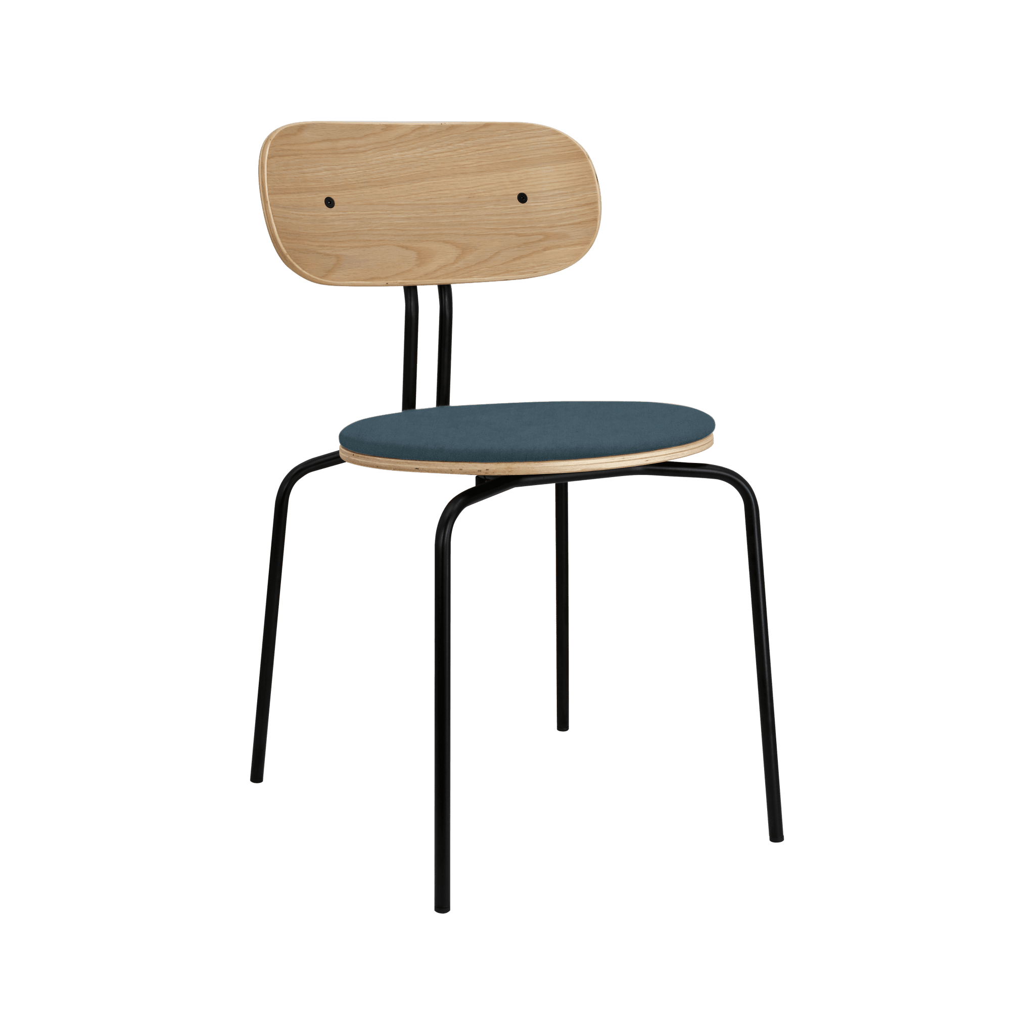 Židle Curious je elegantní, lehký a minimalistický nábytek, vyrobený z dubového dýhy. Je k dispozici s mosaznými nebo černými nohami, a volitelný sedák poskytuje dodateční komfort. Můžete si vybrat sedák z 17 barev tkaniny Horizons, vyrobené ze 100% recyklovaných materiálů, a také v hnědém nebo bílém odstínu tkaniny Teddy Bear.