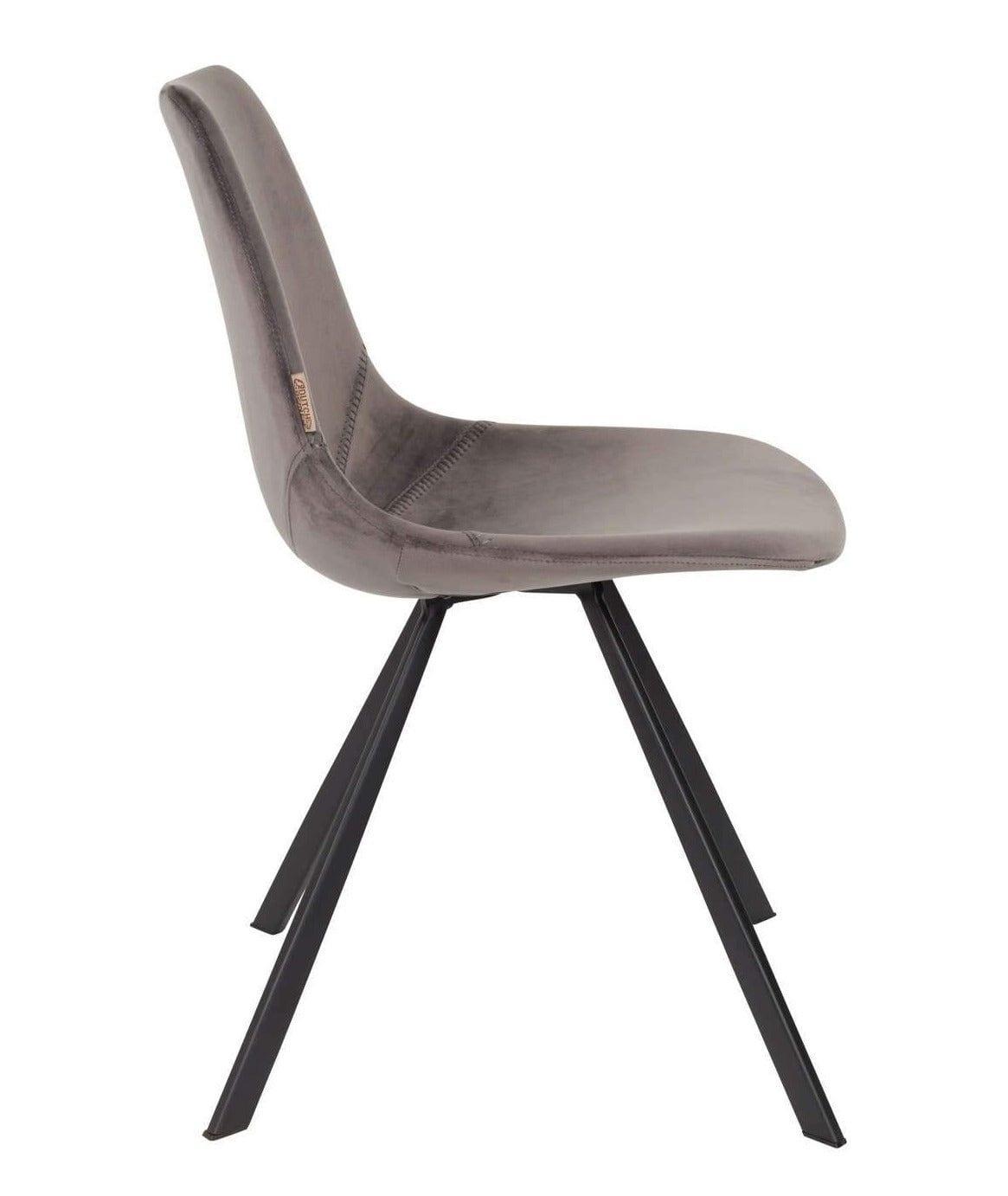 Franky je model židle, který dodává téměř každému interiéru šarm a eleganci. Elegantní, minimalistická forma byla doplněna šedou sametovou tkaninou, která dodává projektu industriální a loftový charakter. Franky je skvělý tip na dárek pro milovníky avantgardy. Dekorativní prošívání sedáku zajišťuje, že židle vypadá ještě lépe.