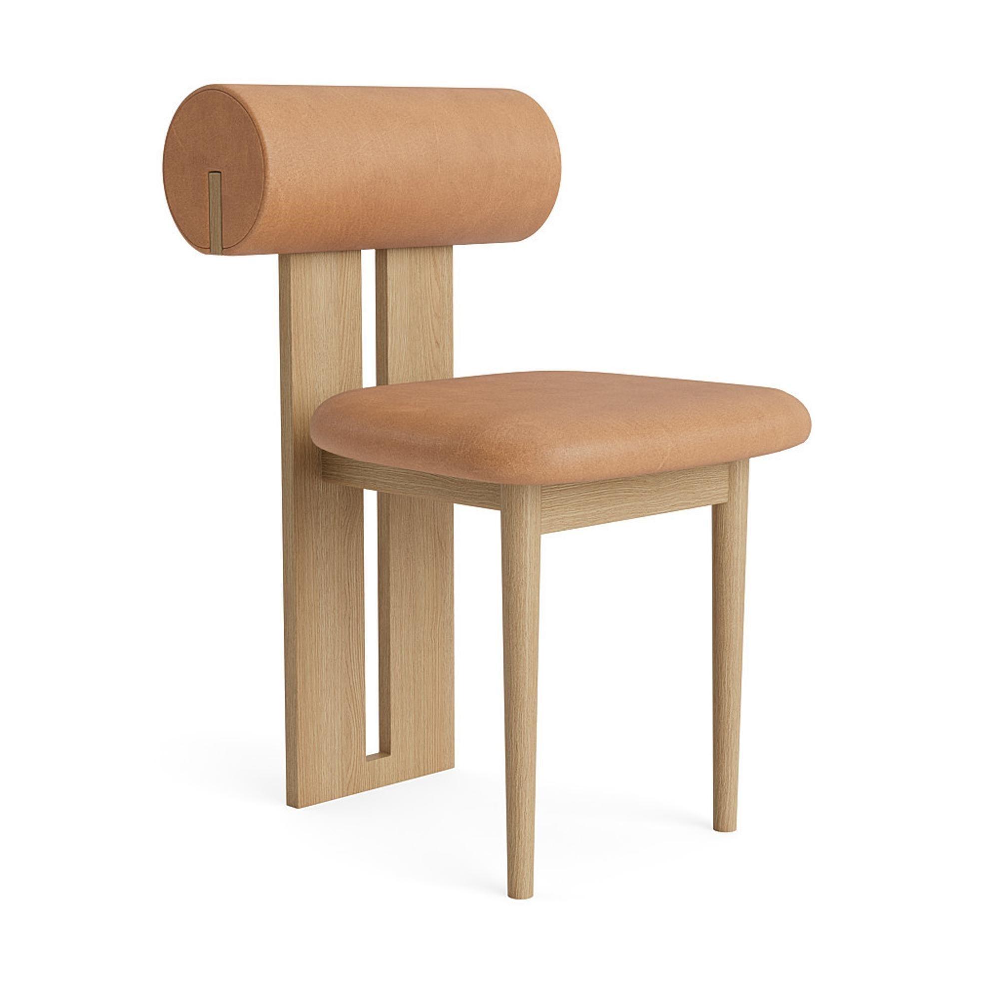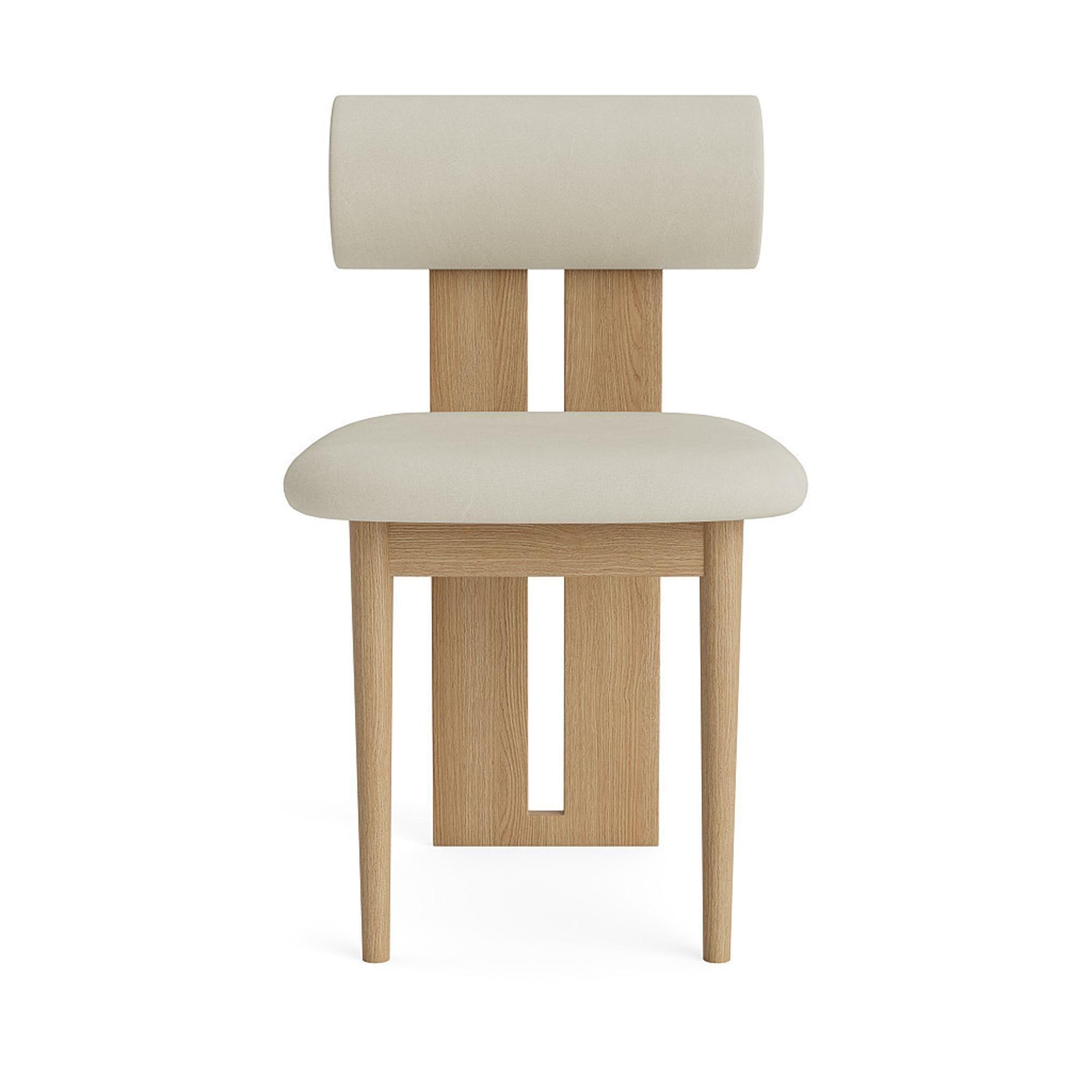 Charakteristický dřevěný profil nohou je k dispozici ve čtyřech různých povrchových úpravách, a sedák a opěradlo jsou dostupné v různých možnostech čalounění. Výsledkem je nábytek, který může stát samostatně jako židle na boku nebo v sadě mnoha kolem stolu v jídelně.