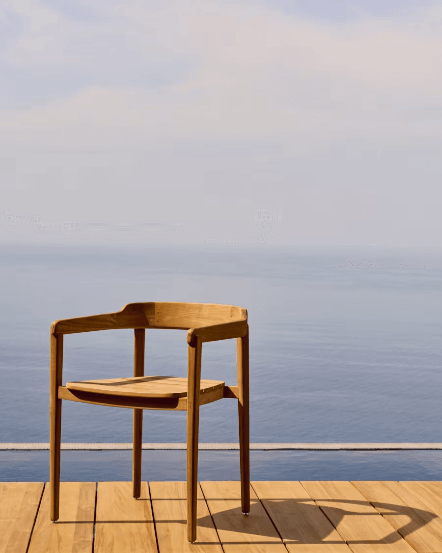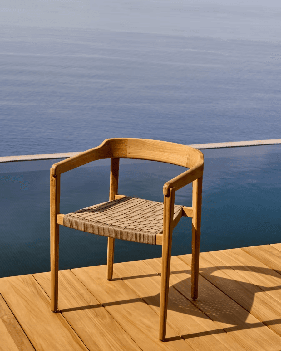 Židle ICARO lite z teakového dřeva s béžovým povrchem