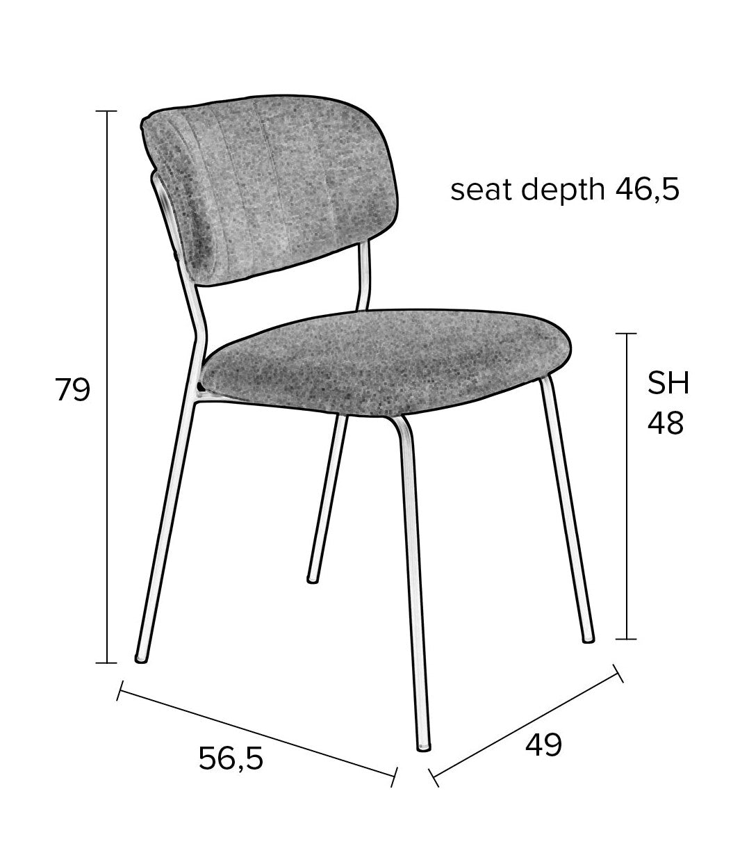 Židle Jolien je ideálním doplňkem do moderně zařízeného interiéru, hodí se jak do jídelny, tak do obývacího pokoje či ženské pracovny. Eleganci podtrhují černé kovové nohy, které zajišťují stabilitu a dodávají hloubku. Jednoduchá forma židle harmonizuje se šedou potahovou látkou, což usnadňuje její začlenění do různorodých aranžmá.