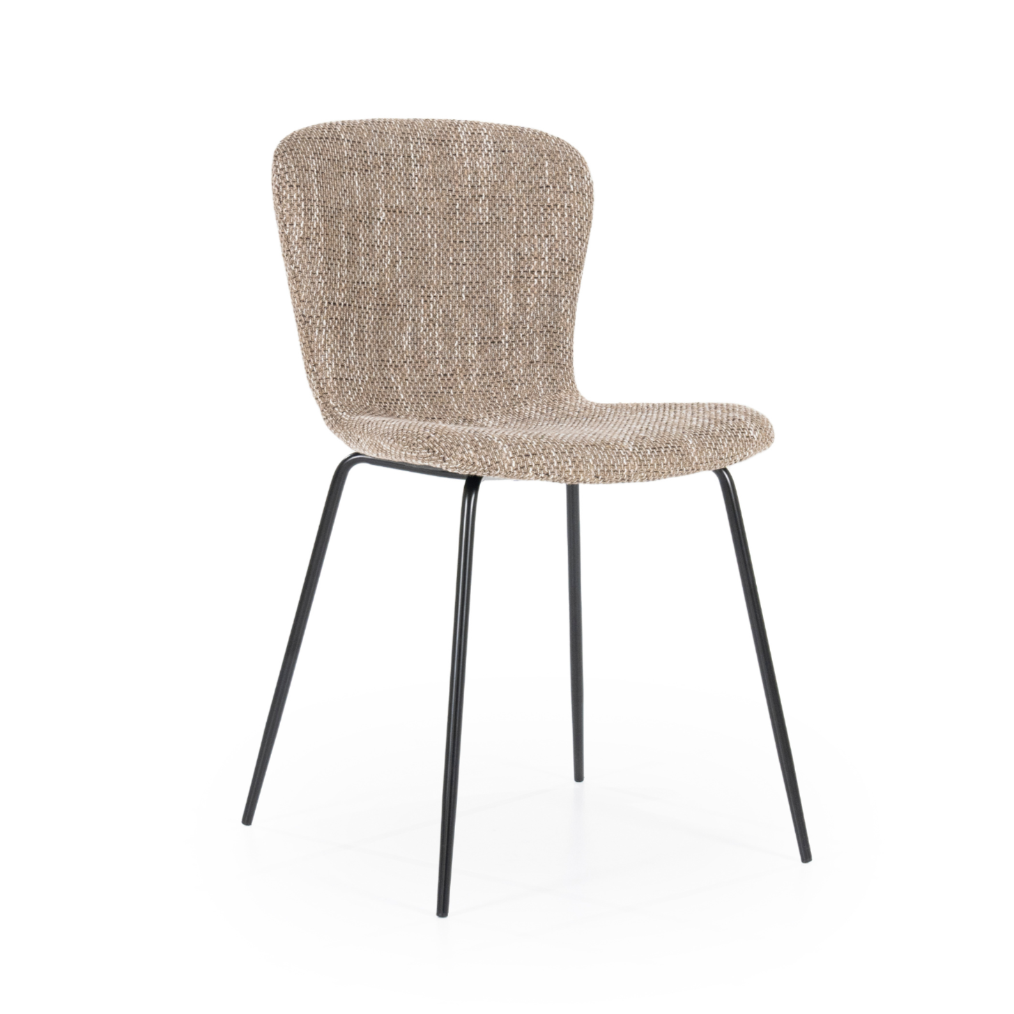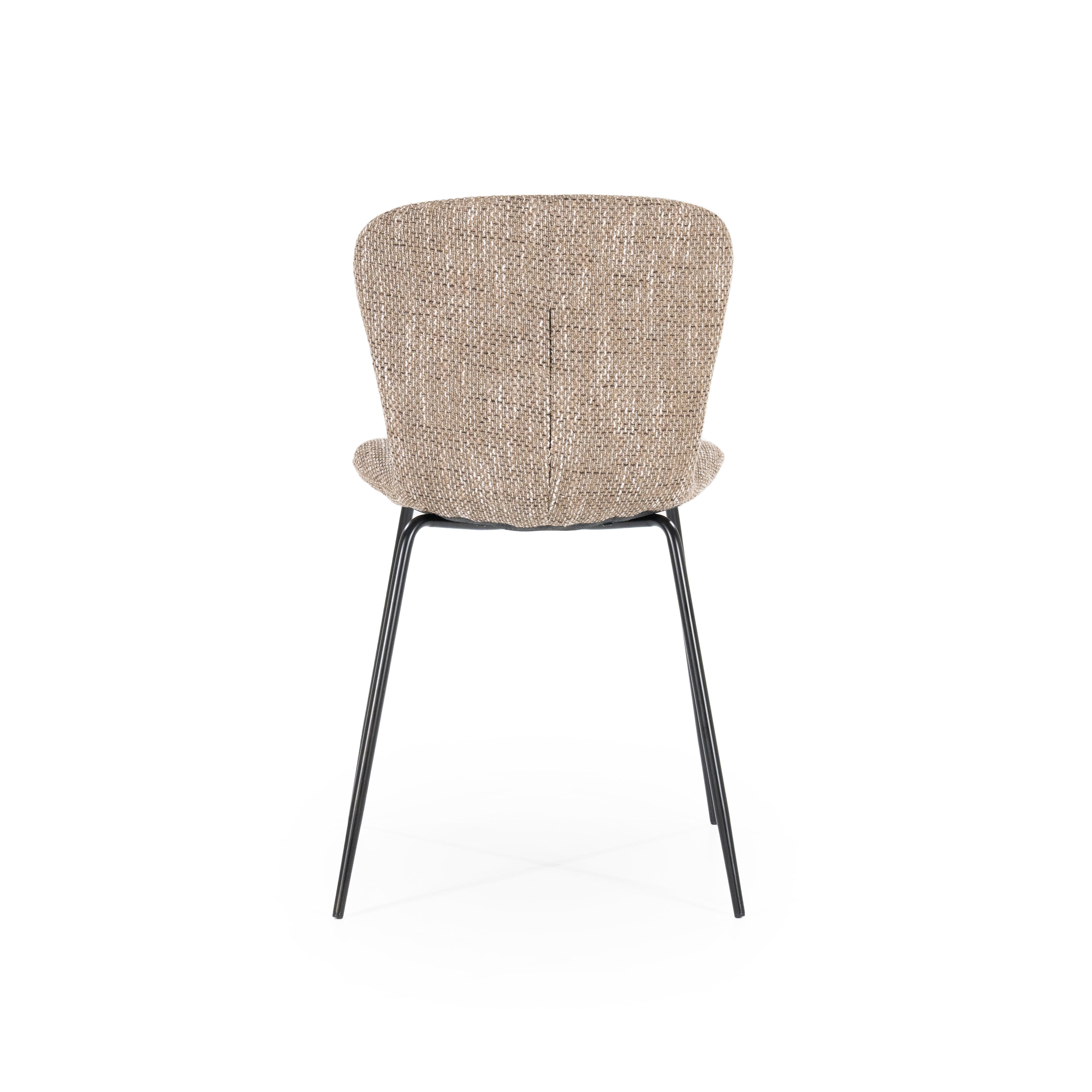 Židle Lass se vyznačuje moderní a jednoduchou formou, která dokonale zapadá do různorodých aranžmá interiérů. Štíhlé kovové nohy zajišťují stabilitu a dodávají celku lehkost, zatímco čalouněné sedadlo a opěradlo garantují pohodlí při každodenním používání. Přirozený odstín látky v kombinaci s černým podstavcem vytváří elegantní kontrast, který se hodí jak do domácích, tak do komerčních prostor.