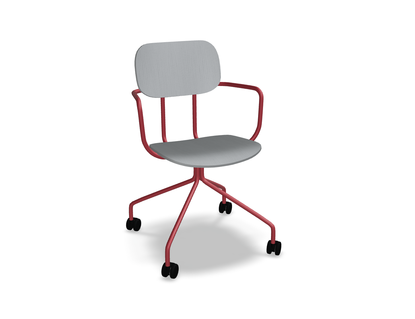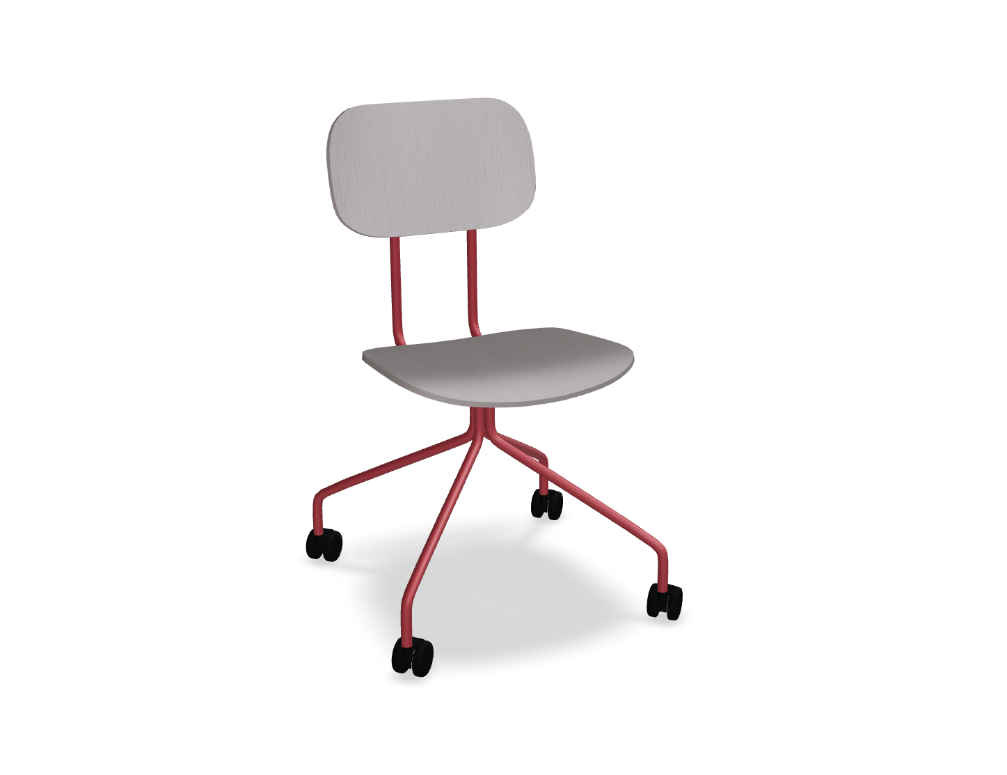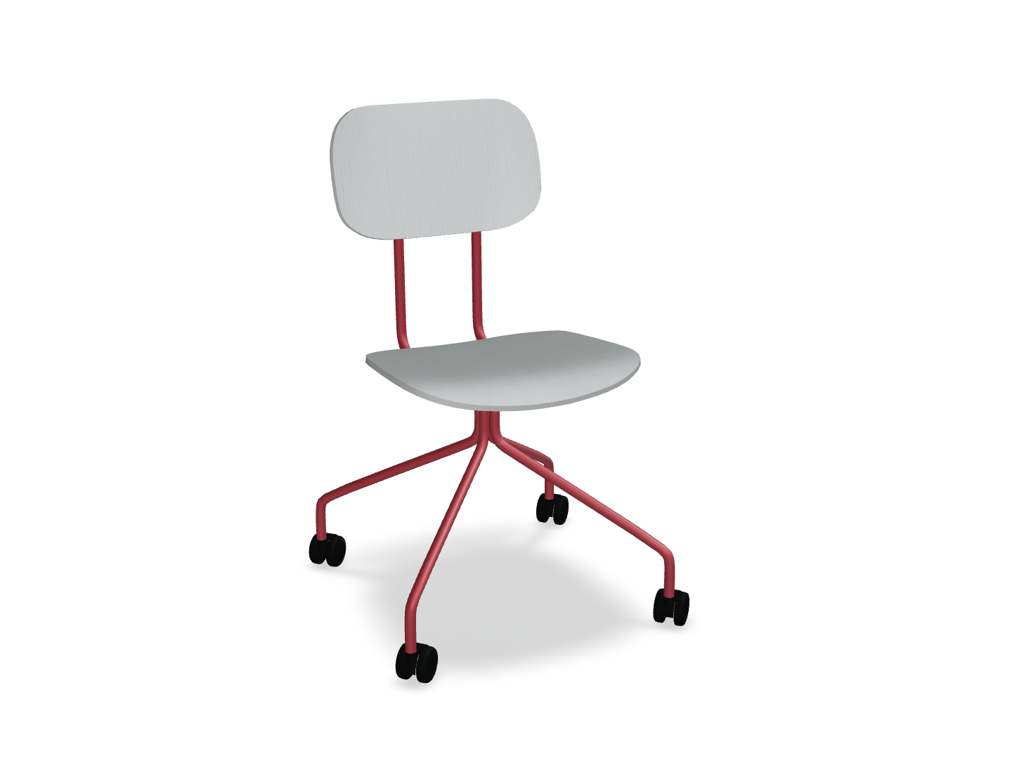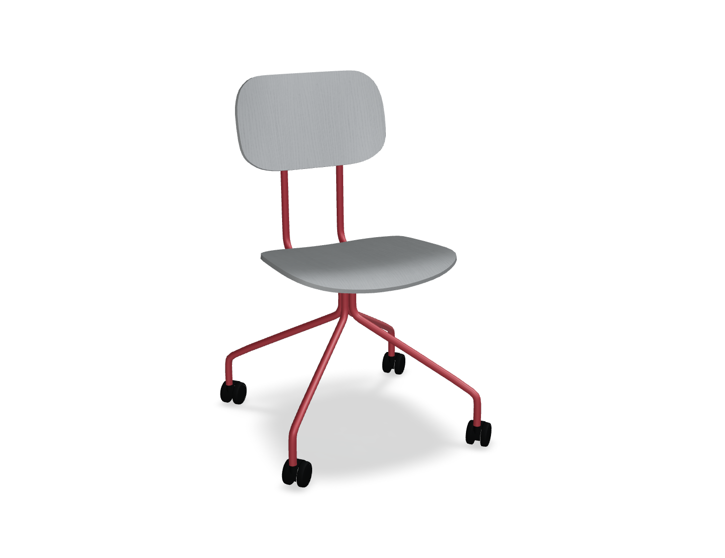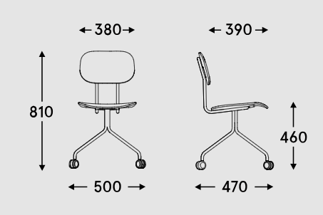 Krzesło dostępne jest z łatwym w pielęgnacji siedziskiem ze sklejki, co czyni je idealnym do przestrzeni, gdzie użytkownicy często się zmieniają. Wysokość siedziska – 460 mm – dopasowana do standardowych stołów, zapewnia wygodę, a mobilna podstawa na kółkach umożliwia swobodne poruszanie się i dostosowanie pozycji do indywidualnych potrzeb użytkownika.