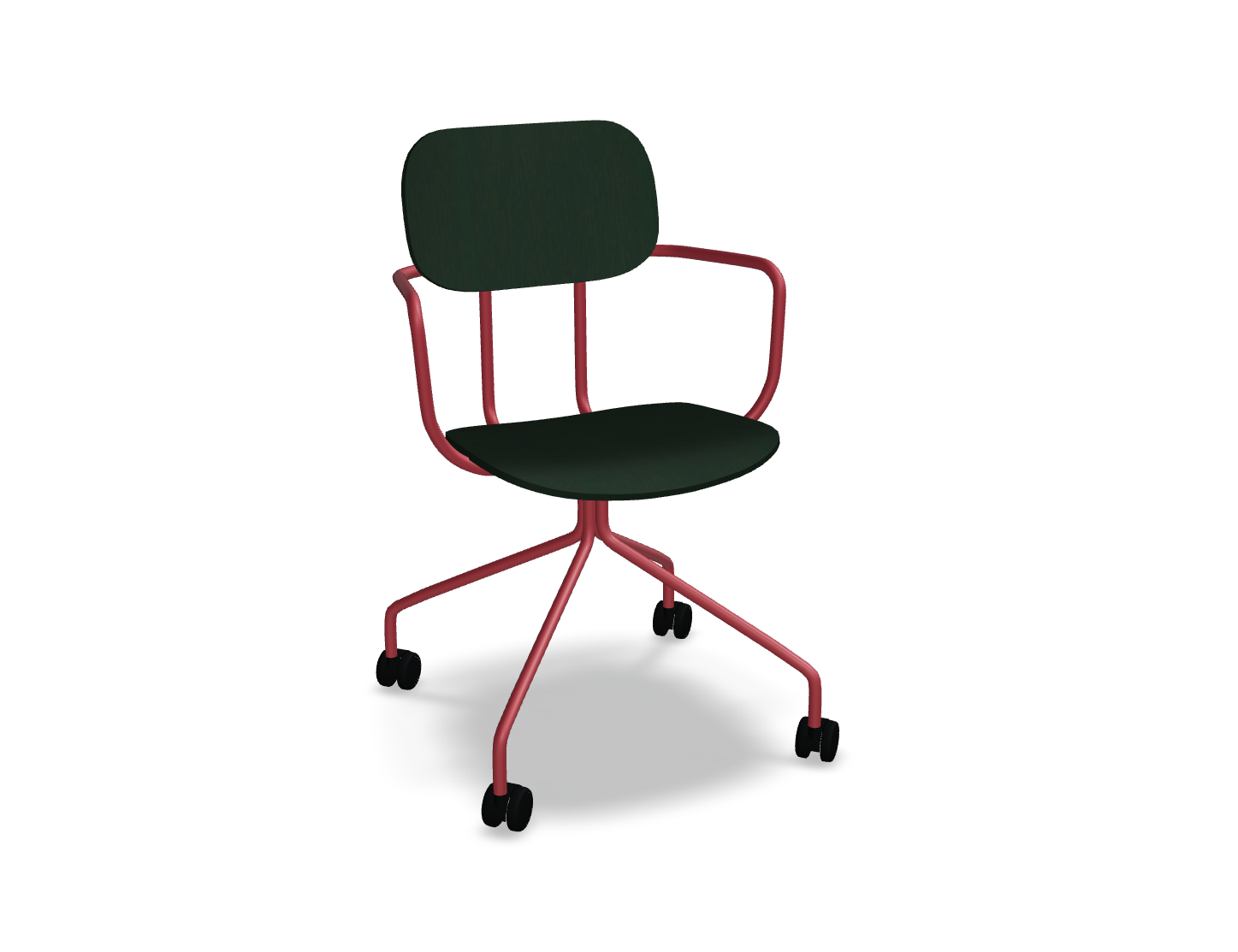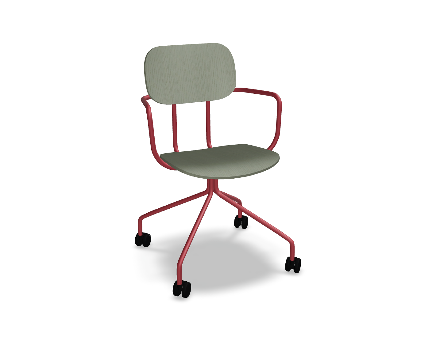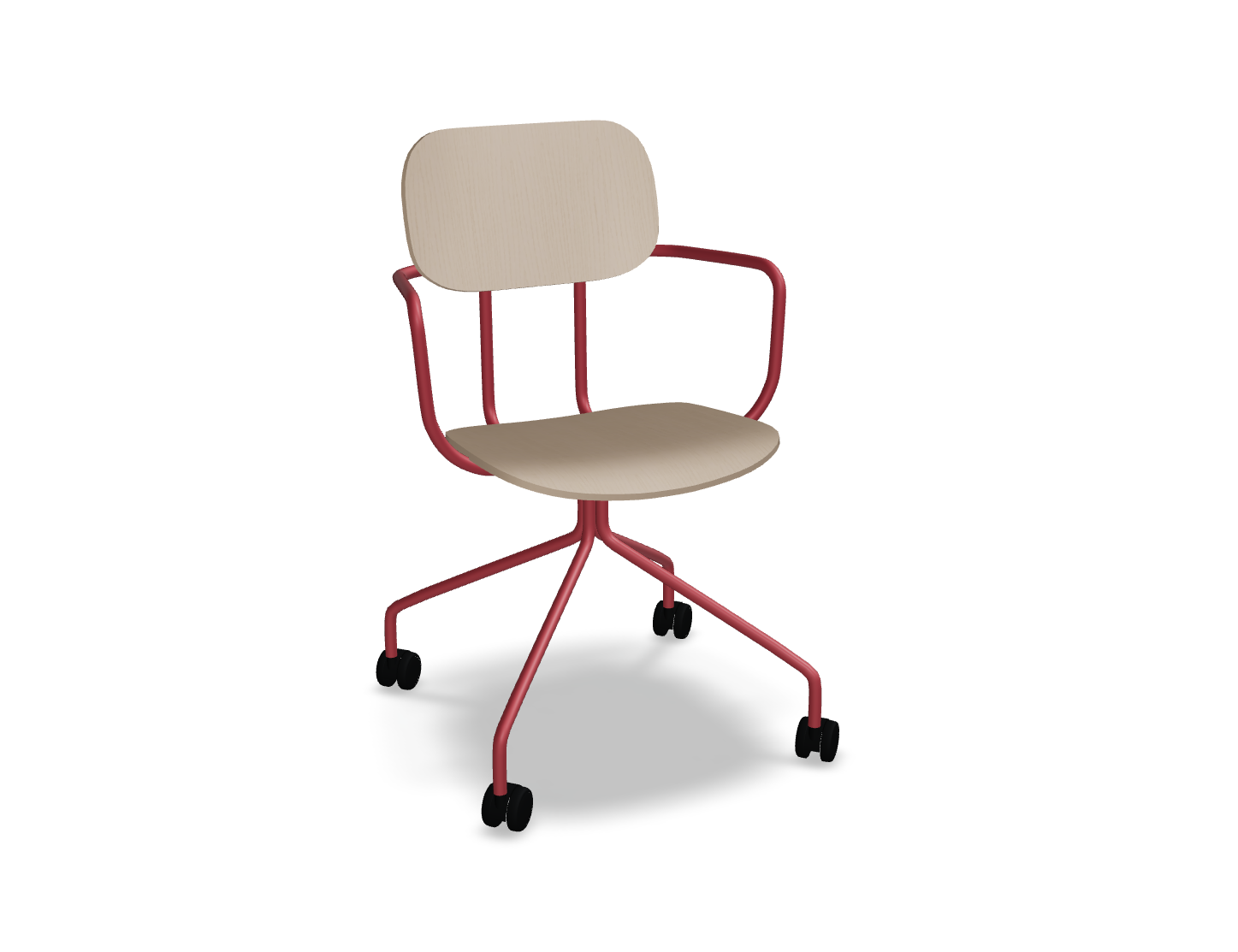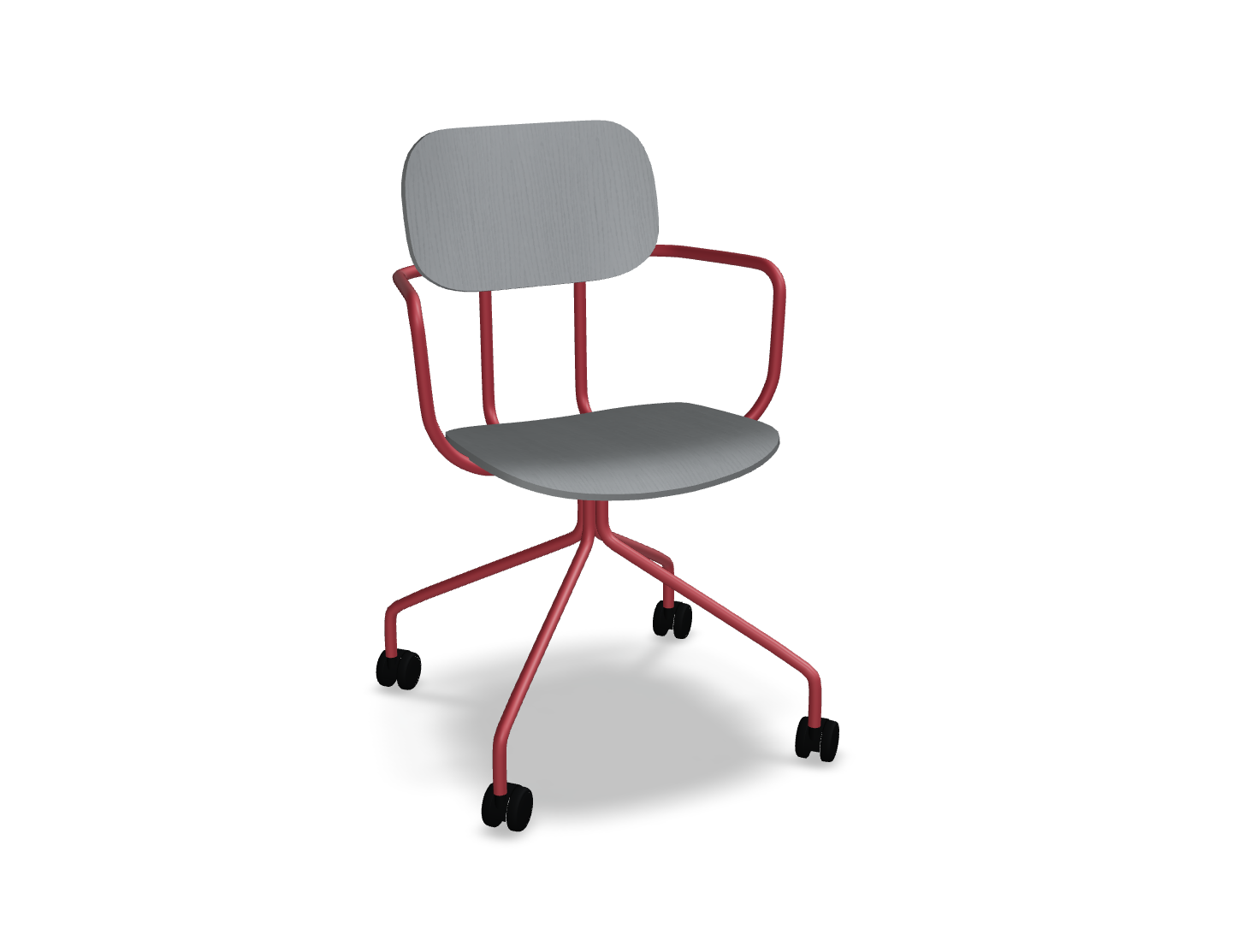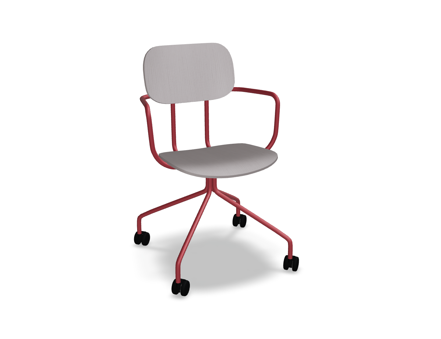 Krzesło dostępne jest z łatwym w pielęgnacji siedziskiem ze sklejki, co czyni je idealnym do przestrzeni, gdzie użytkownicy często się zmieniają. Wysokość siedziska – 460 mm – dopasowana do standardowych stołów, zapewnia wygodę, a mobilna podstawa na kółkach umożliwia swobodne poruszanie się i dostosowanie pozycji do indywidualnych potrzeb użytkownika.