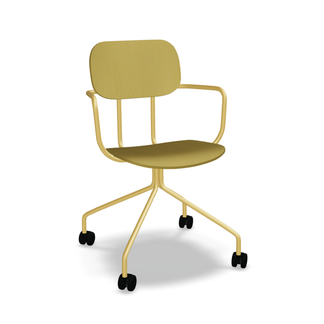 Kancelářská židle New School, inspirovaná klasickou formou školní židle, nabízí mnoho konfigurací ideálních pro různé kancelářské zóny. Verze se čtyřramennou základnou na kolečkách zvyšuje funkčnost, usnadňuje pohyb u stolu a přizpůsobení polohy aktuálním potřebám. Možnost personalizace povrchových úprav a volitelných opěrek na ruce činí tuto židli všestranným řešením, které se skvěle hodí jak do kanceláří, tak do vzdělávacích a workshopových zařízení.