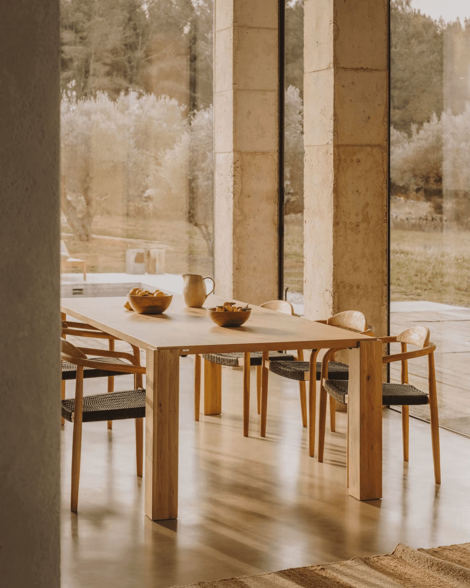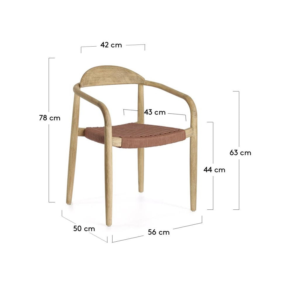 Sedák z ručně pleteného lana nejen dodává židli výjimečný vzhled, ale také ji činí odolnou vůči UV záření, což dělá designovou židli Nina dokonalou volbou jak pro vnitřní, tak pro venkovní použití pod přístřeškem. Tato židle přenáší přirozené kouzlo a eleganci přímo do vašeho interiéru, přičemž dbá na životní prostředí a udržitelný životní styl.
