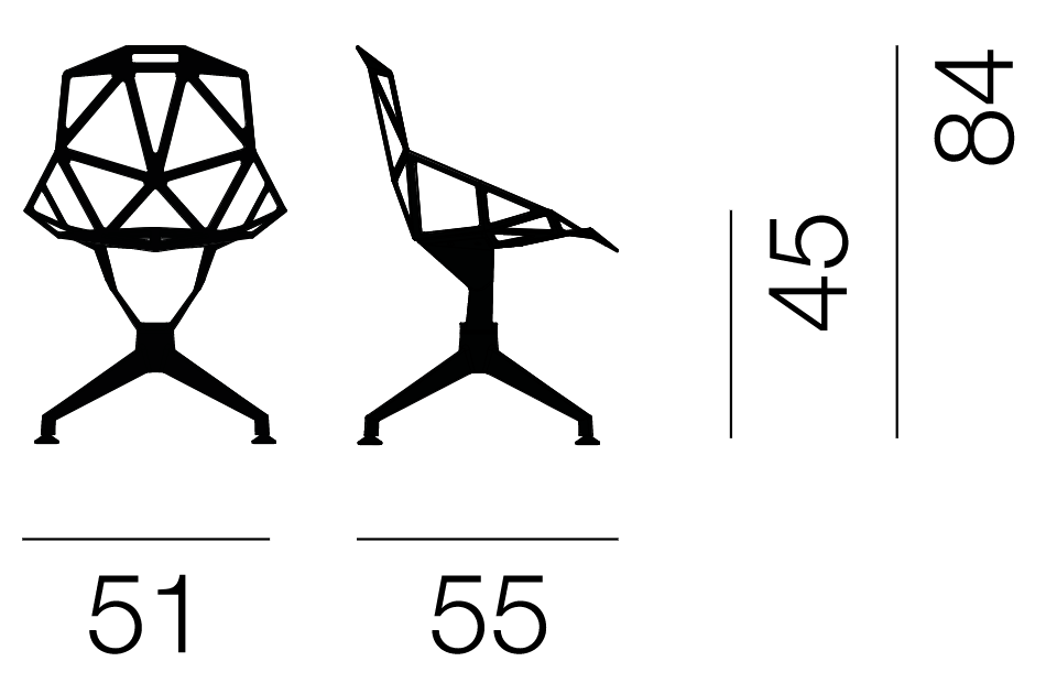 Chair_One_4Star je moderní křeslo otočné na čtyřnohé základně, navržené Konstantinem Grcicem s ohledem na použití jak uvnitř, tak venku. Jeho futuristická, geometrická forma se vyznačuje nejen estetickým, ale i konstrukčním provedením – sedák a základna jsou vyrobeny z odlévaného hliníku, pokrytého titanem a práškově lakovaného, což zajišťuje trvanlivost a odolnost vůči povětrnostním podmínkám.