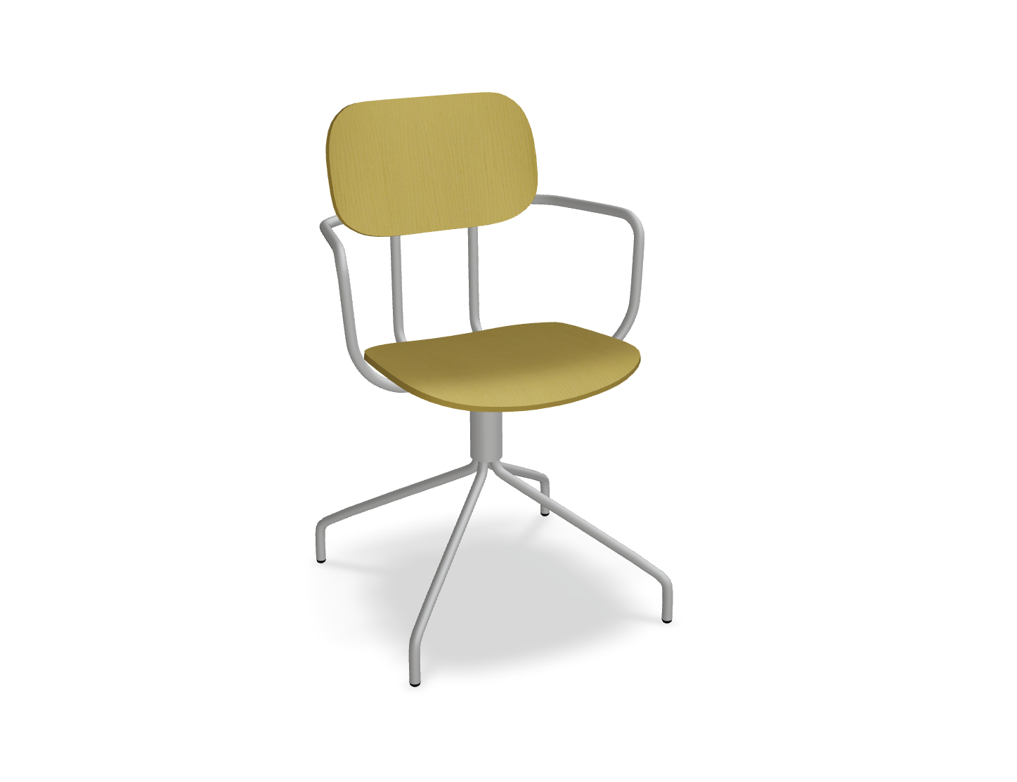 Otáčecí křeslo New School je moderní reinterpretací klasické formy školního křesla, nabízející širokou škálu konfigurací přizpůsobených různým kancelářským prostorům. V provedení s překližkou a s otočným podstavcem představuje praktický a stylový doplněk do každého interiéru. Sedadlo otáčející se o 360° umožňuje snadné vstávání od stolu a pohyb v rámci pracovního místa, a volitelné opěrky rukou dále zvyšují komfort.