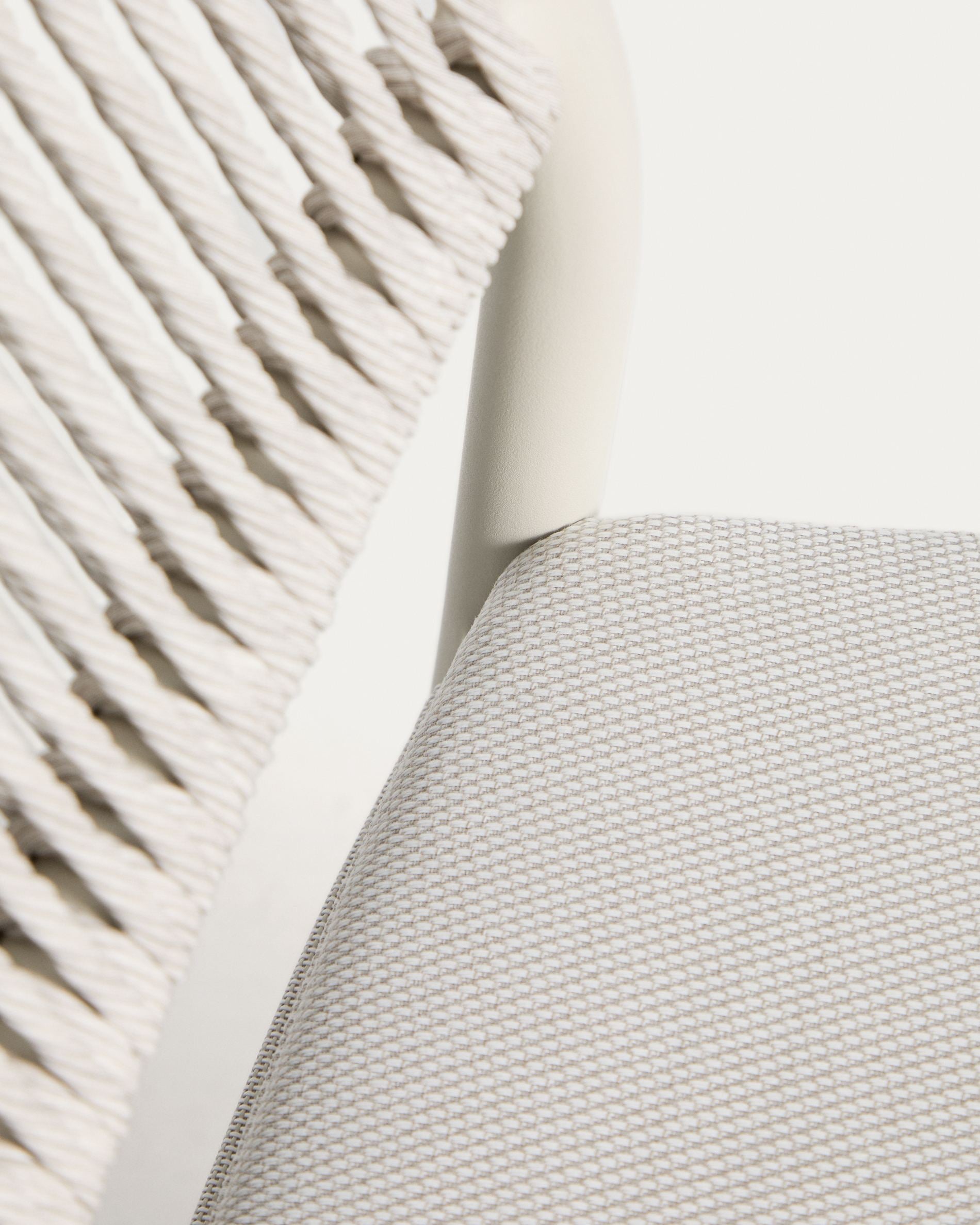 Židle Argasi je harmonickým spojením lehké formy, pevných materiálů a nadčasové estetiky, které se hodí jak do zahrady, na terasu, tak i do interiérů. Hliníková konstrukce zajišťuje odolnost vůči vlhkosti, UV záření a korozi, díky čemuž židle skvěle vyhovuje pro venkovní použití. Ručně pletené opěradlo ze syntetického lana dodává celku přirozený charakter a příjemnou vizuální lehkost, přičemž si zachovává vysokou trvanlivost.