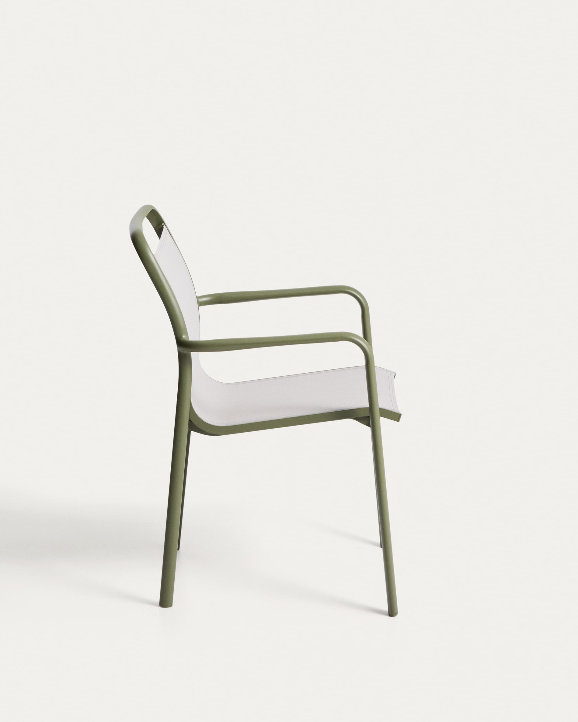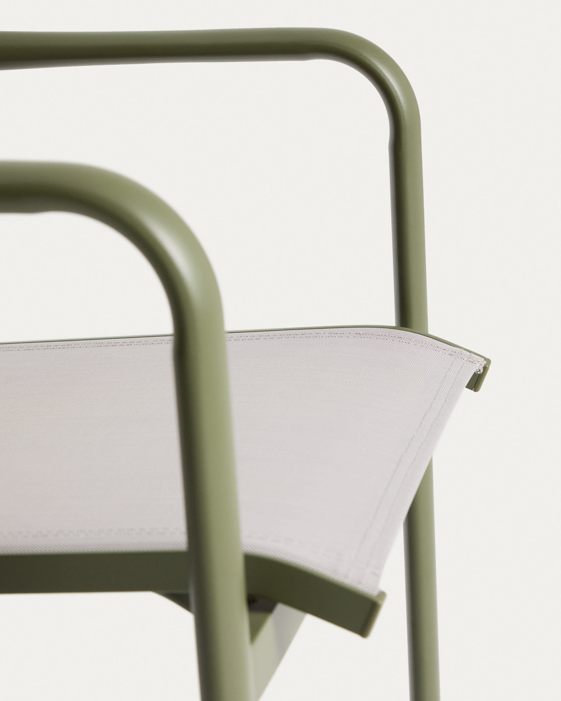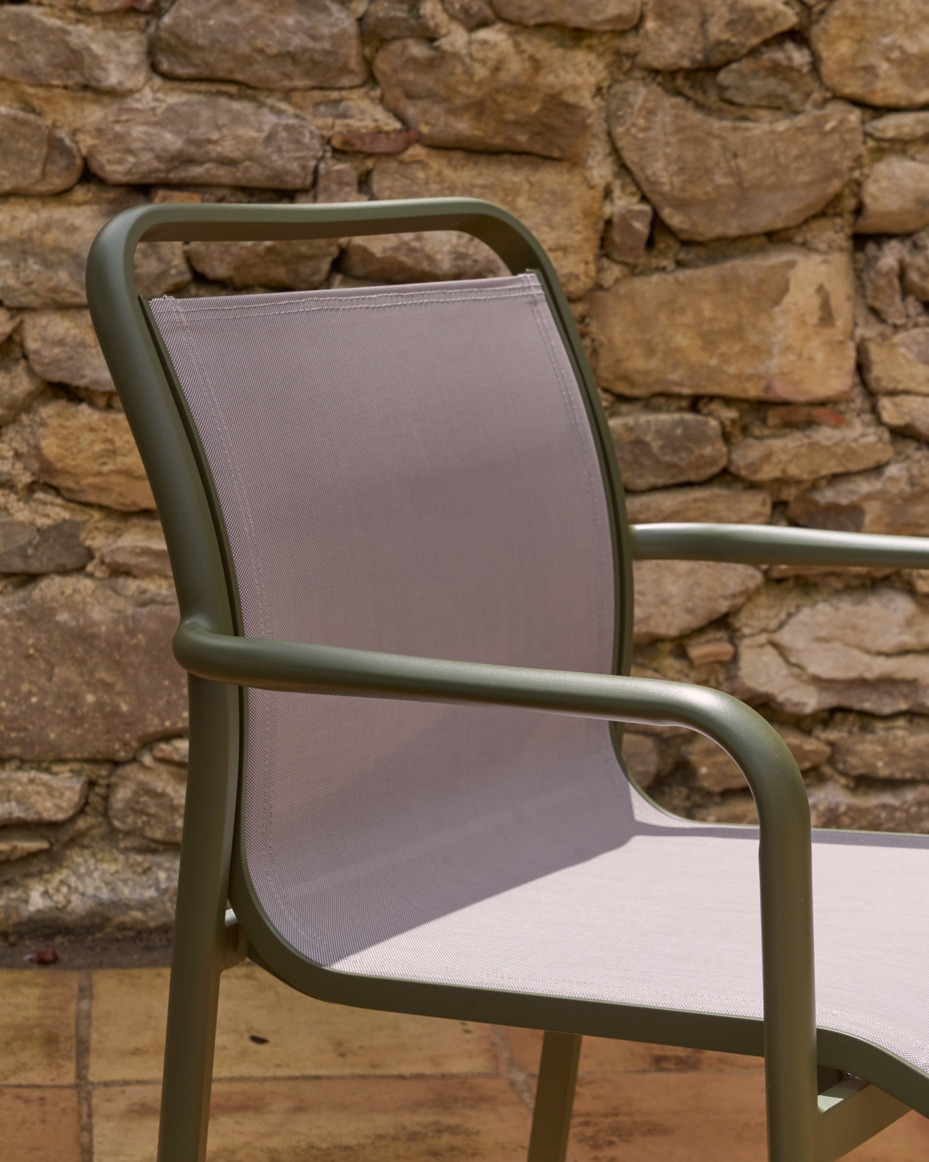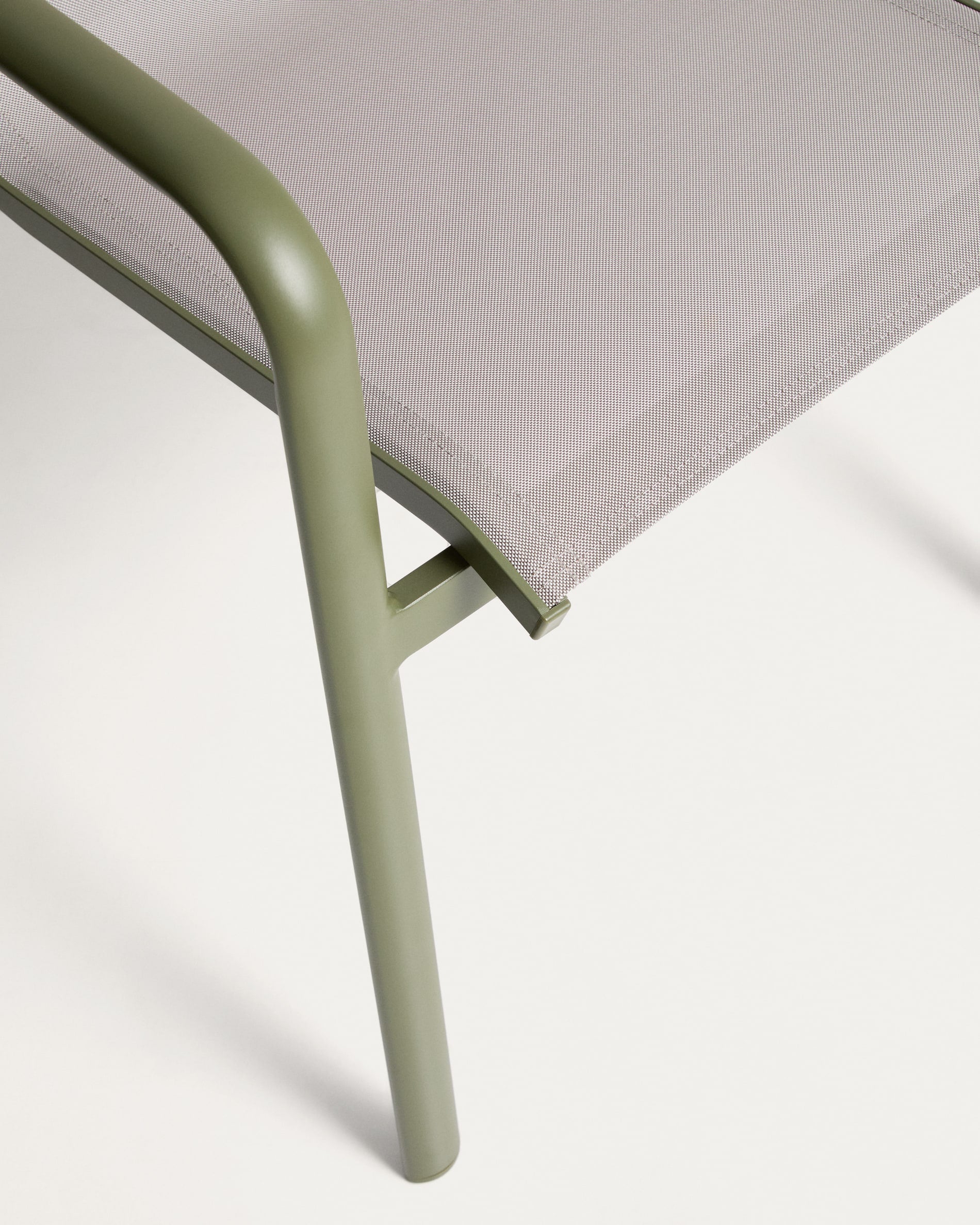 Židle Luri je praktické a moderní řešení pro vnitřní i venkovní použití, které spojuje pohodlí s vysokou trvanlivostí. Hliníková konstrukce zajišťuje, že zahradní židle je lehká, a zároveň odolná proti rzi, korozi a UV záření, což ji činí ideální pro terasu, balkon, zahradu nebo jídelnu. Sedák a opěradlo vyrobené z odolné tkaniny zajišťují pohodlí při sezení, dobrou ventilaci a udržení tvaru i při intenzivním každodenním používání.
