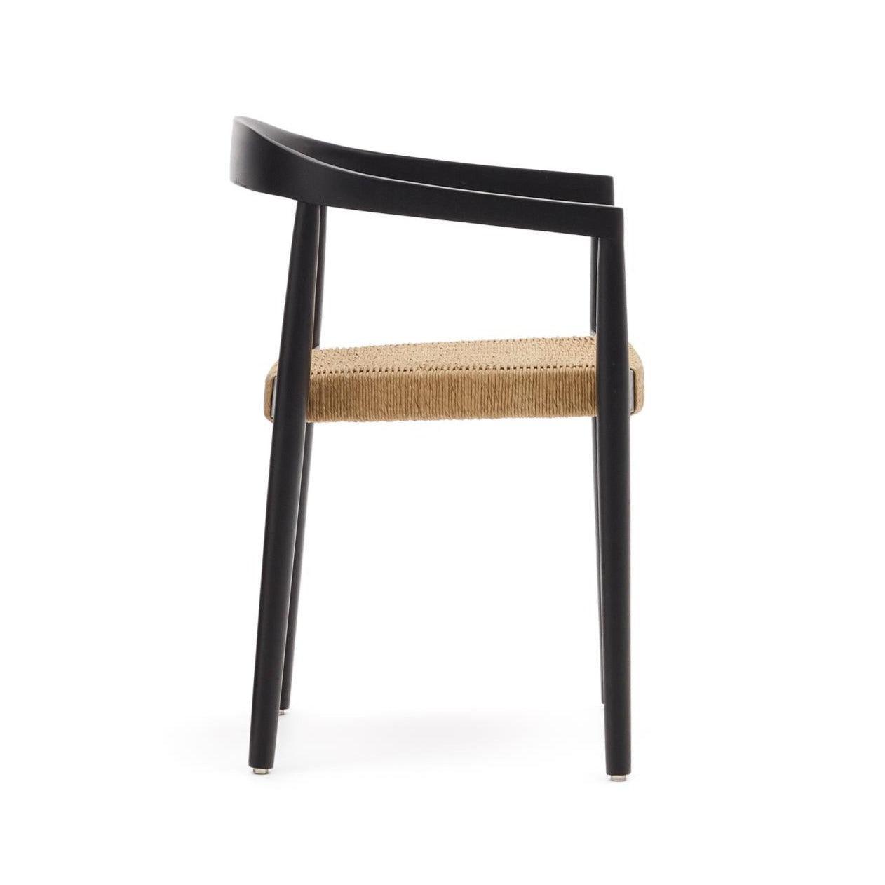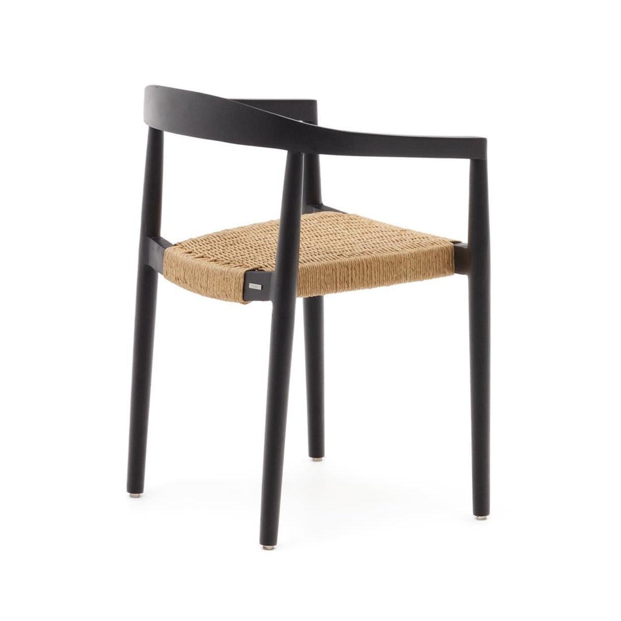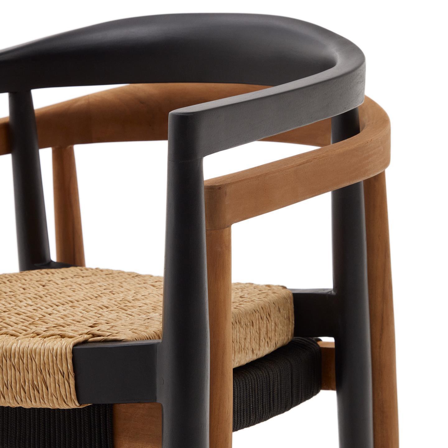 Zahradní židle YDALIA černé teakového dřeva s béžovým lanem