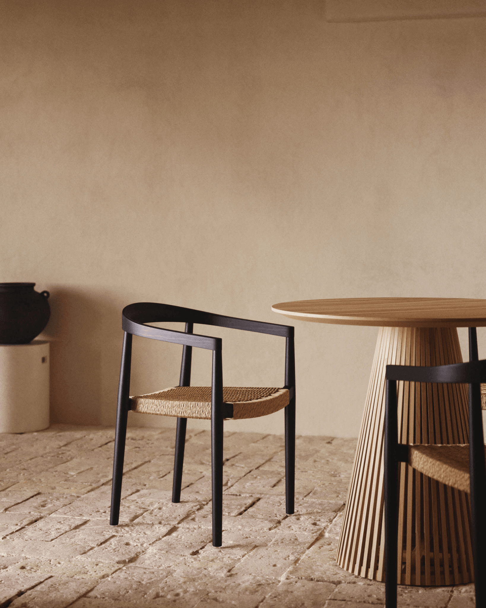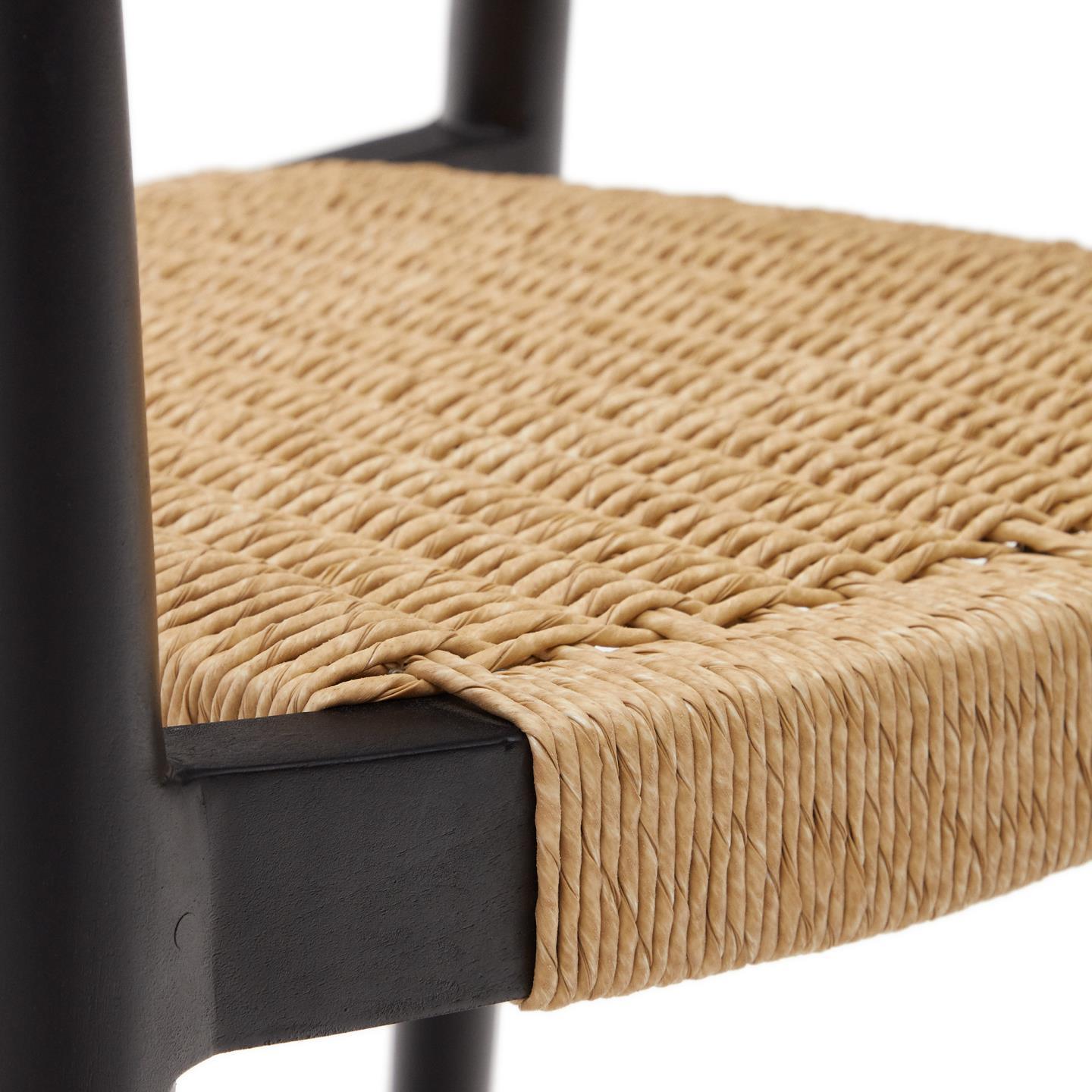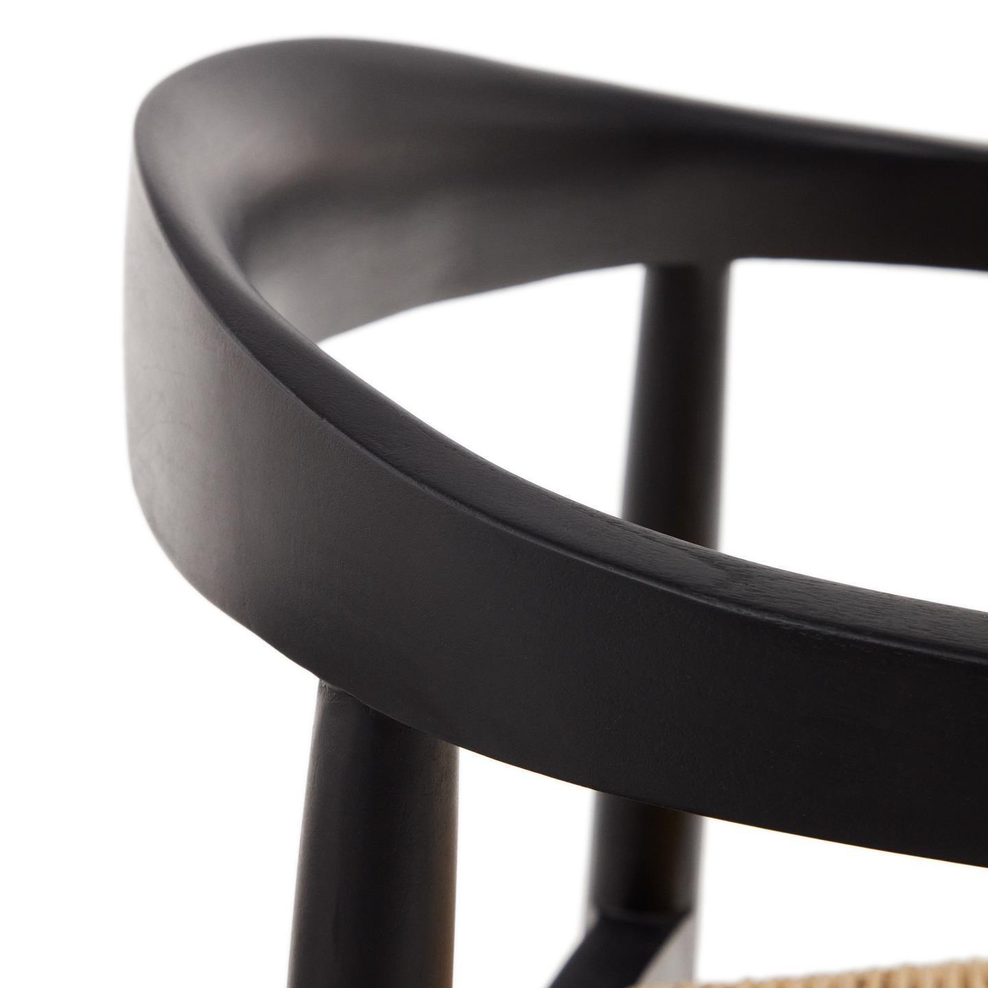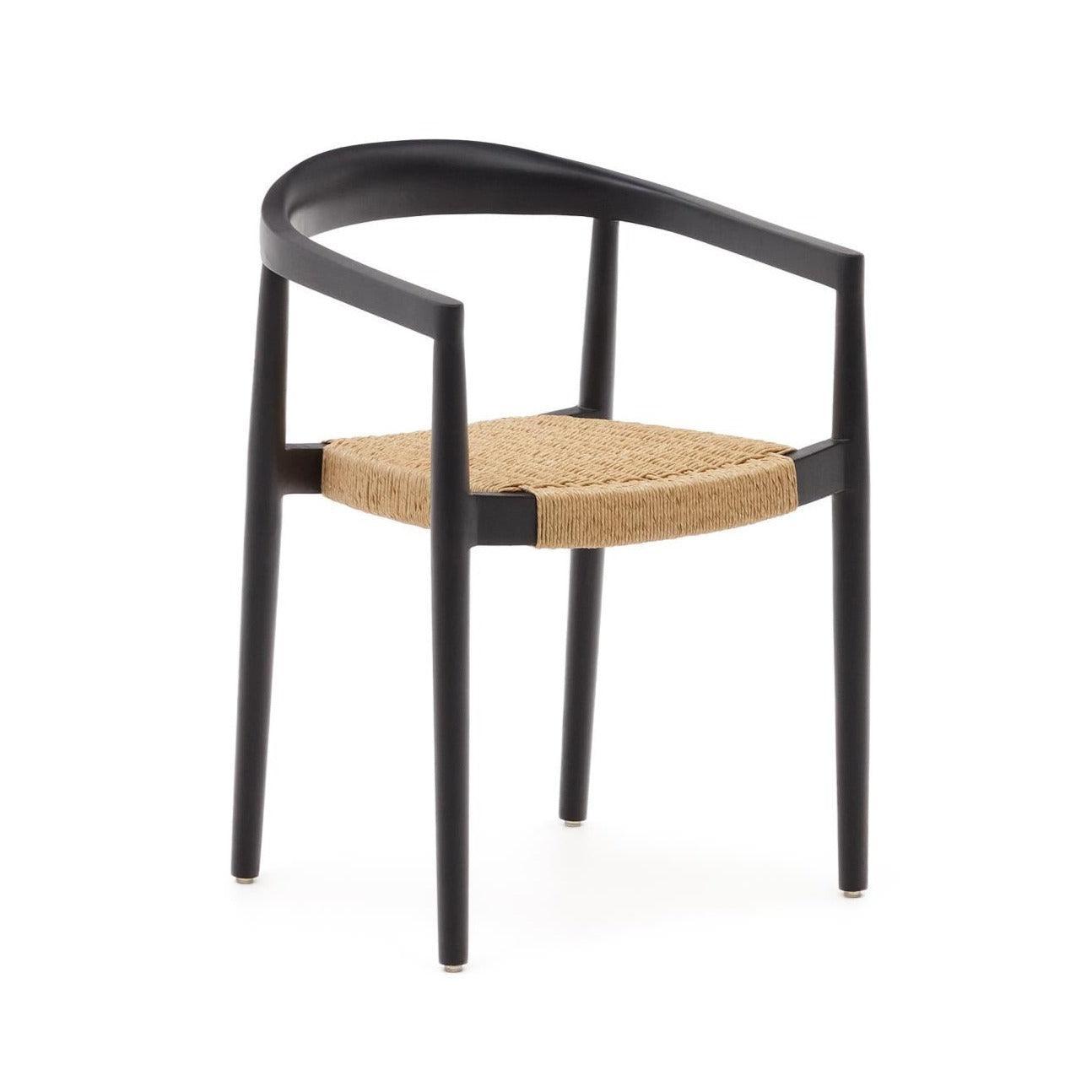 Zahradní židle YDALIA černé teakového dřeva s béžovým lanem