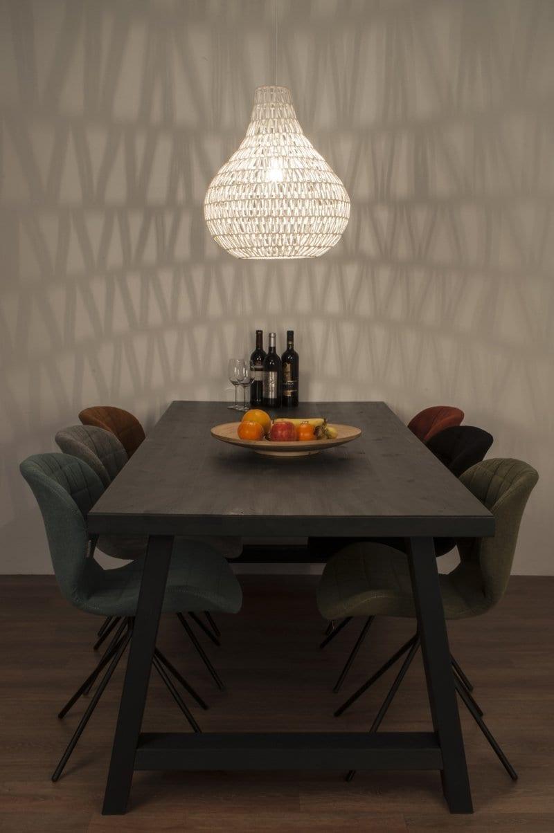 OMG to moderní židle s charakterem, která okouzluje svým tvarem. Poutavé sedadlo, potažené vysoce kvalitní černou tkaninou, zdobí prošívání do kosočtverců. Jak sedák, tak opěradlo byly tvarovány tak, aby i při dlouhodobém používání zajišťovaly komfort. Na kovovém rámu se nachází čtyři nohy, které se sbíhají do středu a jsou v černé barvě.