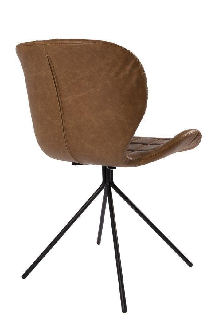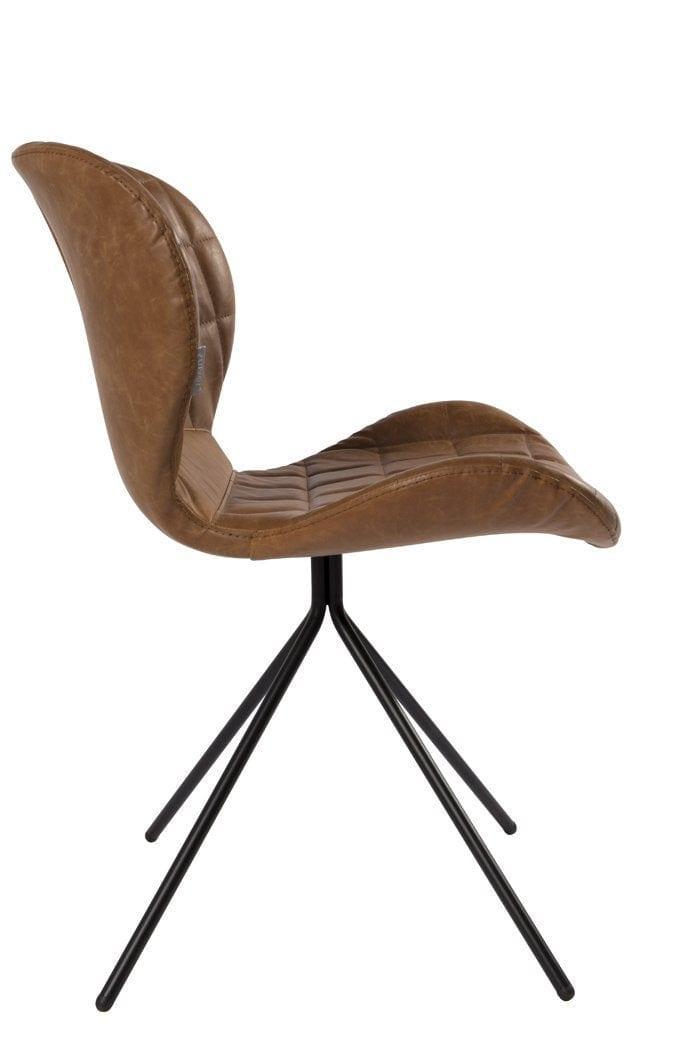 OMG to moderní židle s charakterem, která okouzluje svým tvarem. Na pohled přitažlivé sedadlo, potažené vysoce kvalitní hnědou ekologickou kůží, zdobí prošívání do kosočtverců. Jak sedák, tak opěradlo byly tvarovány tak, aby i při dlouhodobém používání zajišťovaly komfort. Na kovovém rámu se nacházejí čtyři nohy, které se sbíhají do středu a jsou v černé barvě.