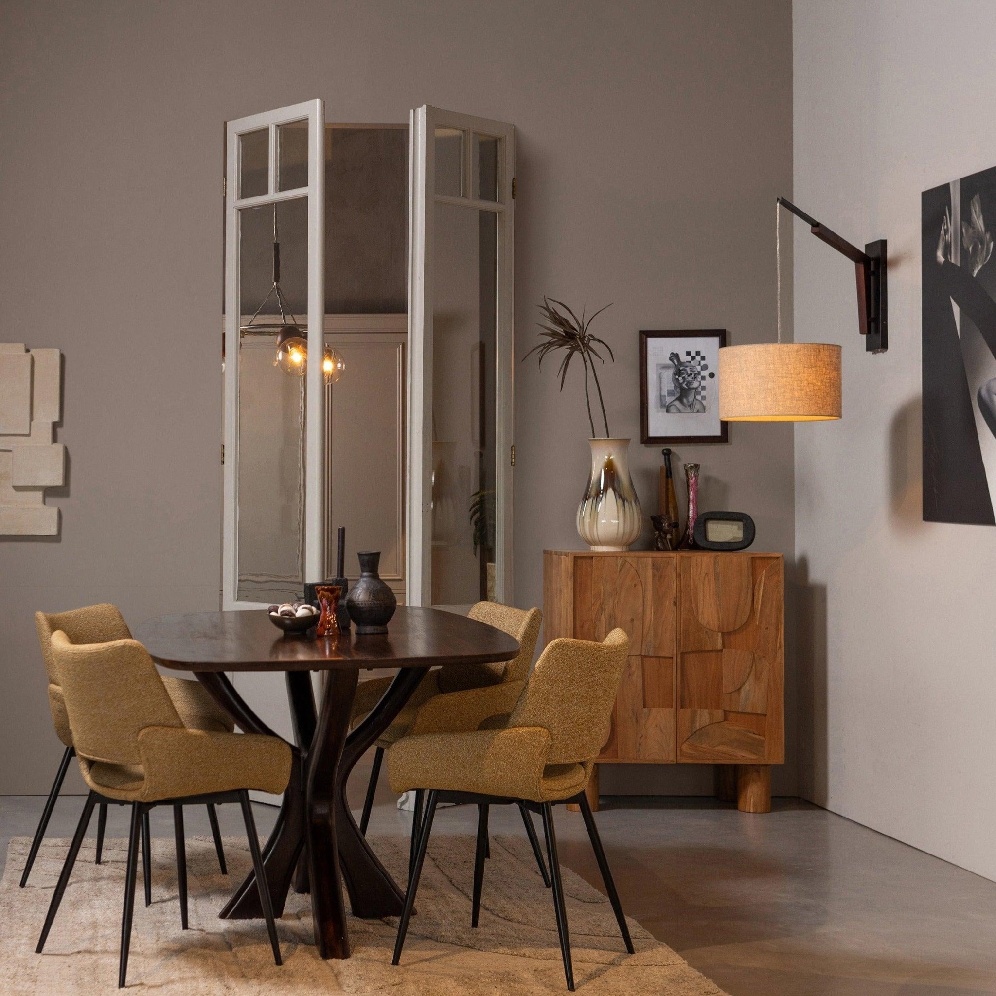 Spojení tmavé základny a hořčicového melíru kontrastuje, přičemž vytváří soudržný celek, na který se těžko zapomíná. Tradiční, elegantní tvar židle zajišťuje, že je nejen designová, ale také pohodlná.