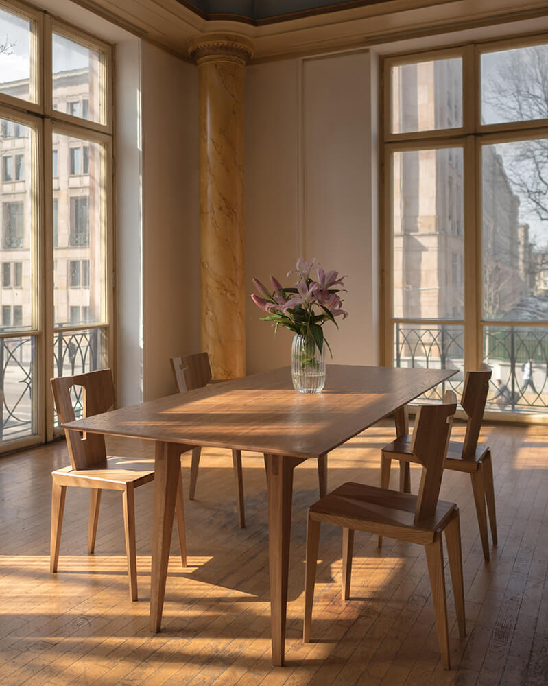 Vyrobená z masivního dřeva, dřevěná židle Pegaz okouzluje jednoduchou, minimalistickou formou, poctivým řemeslem a pevnými truhlářskými spoji. Založená na myšlence tradičního zydla, představuje příklad, jak klasické truhlářské techniky lze přetvořit na moderní židli s výjimečnou estetikou. Je to jídelní židle, která se osvědčí také v kuchyni nebo obývacím pokoji, dodávající jim nadčasový charakter.
