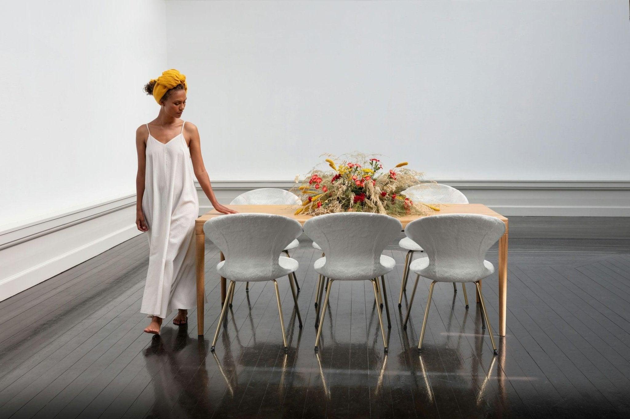 Židle je k dispozici v 17 pečlivě vybraných barvách tkaniny Horizons, která je z 100 % vyrobena z recyklovaných materiálů nebo ve 2 tkaninách z kolekce Teddy. Dále, možnosti nohou zahrnují mosazné, chromované nebo černé povrchové úpravy, což umožňuje přizpůsobení židle různým stylům interiérů. Tato kombinace estetiky, funkčnosti a udržitelného přístupu k materiálům činí Time Flies jedinečným a trvalým návrhem.