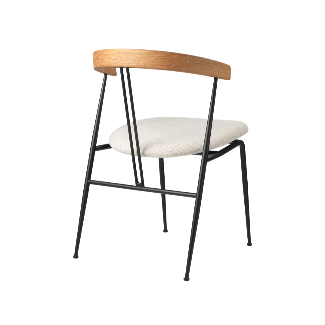 Židle Violin značky GUBI je elegantní spojení skandinávské preciznosti a italského citu pro formu, navržené duem GamFratesi. Její název a tvar jsou inspirovány smyčcem houslí – dva paralelní pruty vycházející z opěradla připomínají struny nástroje. Jemně profilované, polootvorené opěradlo a široké, čalouněné sedadlo zajišťují komfort při používání, což činí z Violin ideální volbu jak do jídelny, tak do komerčních prostor.