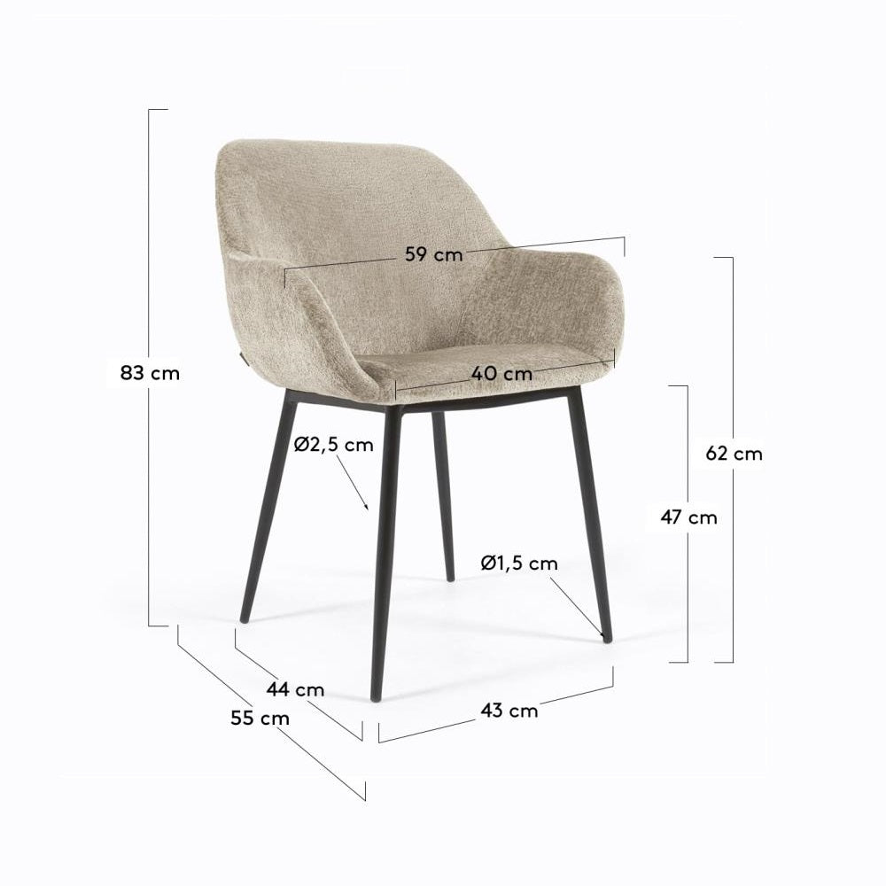 Metalové nohy s černým povrchem představují kontrastní, moderní prvek, který křeslu dodává charakter a stabilitu. Tato kombinace současného designu a výjimečného materiálu činí křeslo Konna nejen funkčním, ale také ozdobným prvkem místnosti.