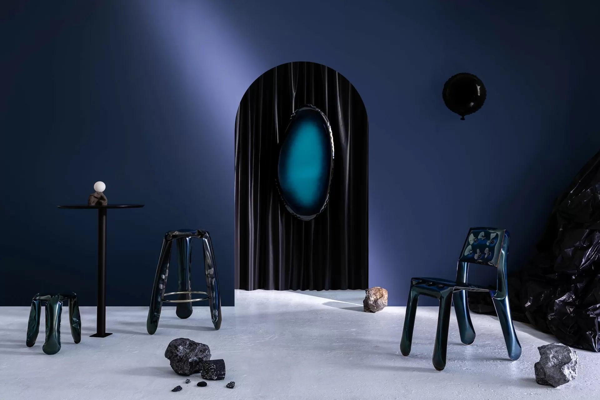 Tato neobyčejná židle proniká do prostoru jako hrdina z jiné reality, přinášející dech nové energie a nepředvídatelnosti. Jako malé dítě objevující svět, Chippensteel 0.5 nás neustále ohromuje svým neobyčejným kouzlem a plností výrazu.