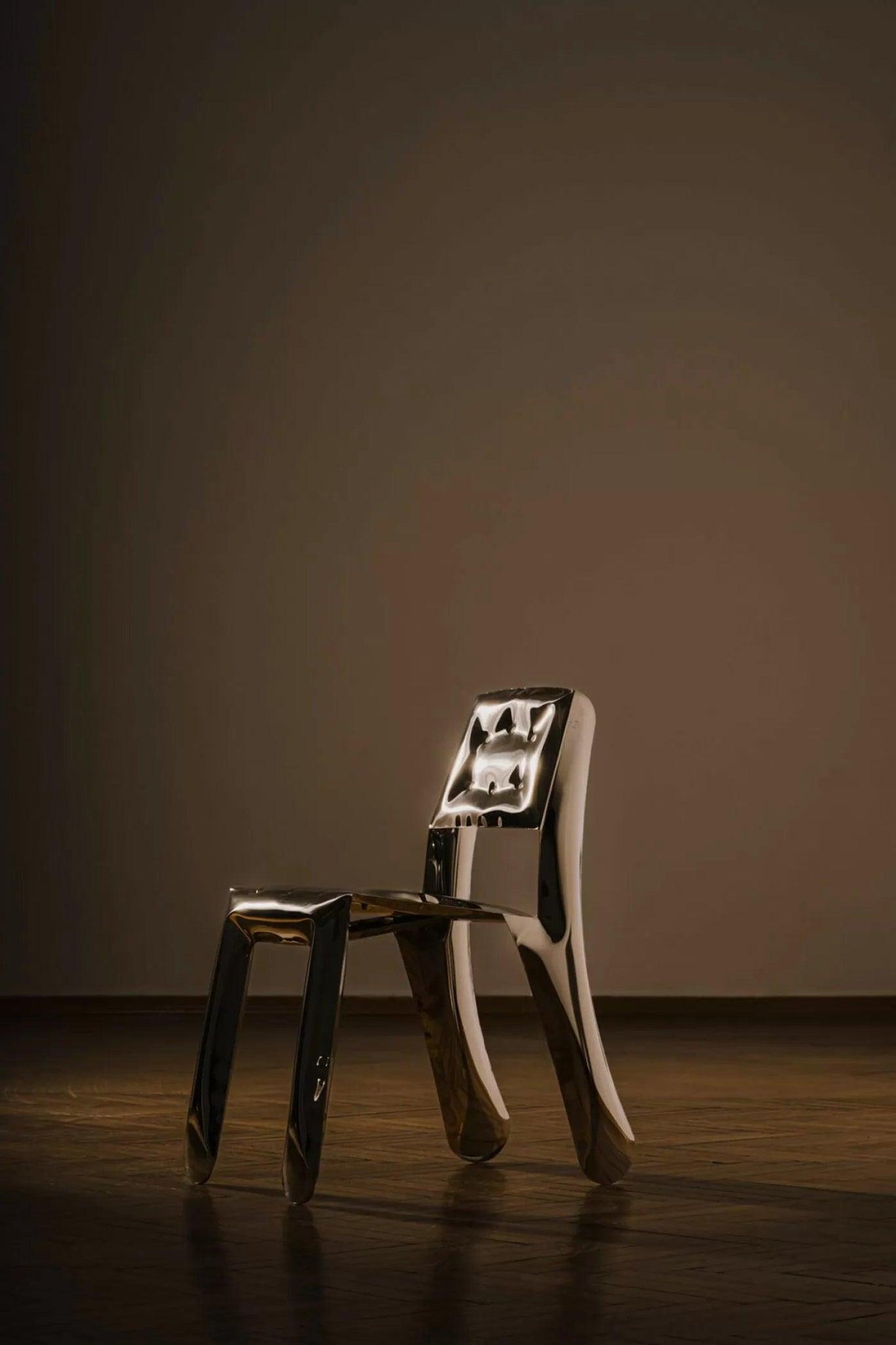 Tato neobyčejná židle proniká do prostoru jako hrdina z jiné reality, přinášející nádech nové energie a nepředvídatelnosti. Jako malé dítě objevující svět, Chippensteel 0.5 nás neustále ohromuje svým neobyčejným kouzlem a plností výrazu.