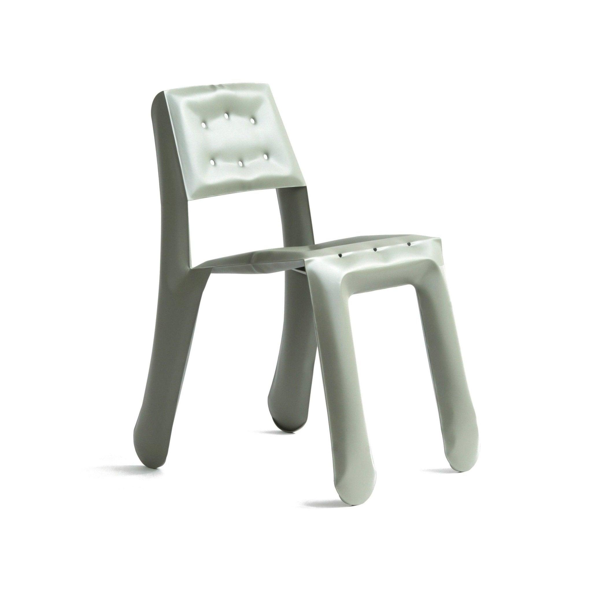 Židle Chippensteel 0.5 v šedé barvě je výraz mystického tance mezi kovářem a umělcem. Stejně jako ocel, která je podrobena kontrolované deformaci, tento neobyčejný předmět přijímá nepředvídatelné formy, které rozkvétají jako poupata jarních květin.