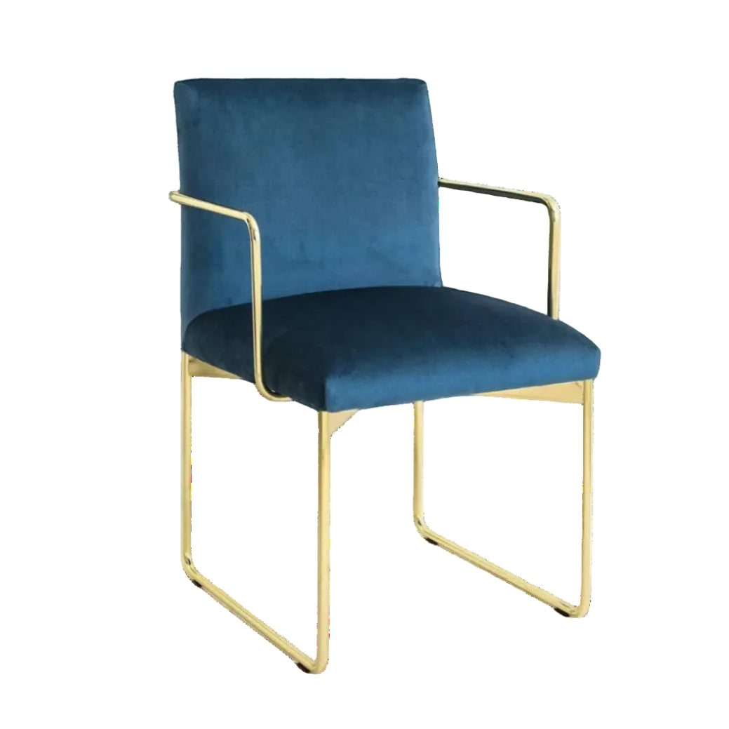 Křeslo s područkami Gala je elegantní a rafinovaný návrh, který spojuje jemný lesk kovu s čalouněným sedadlem. Vyrobeno z kovového rámu ve tvaru trubky a obdélníkovým kovovým opěradlem, křeslo s područkami zajišťuje stabilitu a výjimečný komfort. Disponuje polstrovaným sedadlem podporovaným elastickými pásy, což z něj činí ideální volbu do jídelny, dodávající interiéru nostalgickou, retro atmosféru.