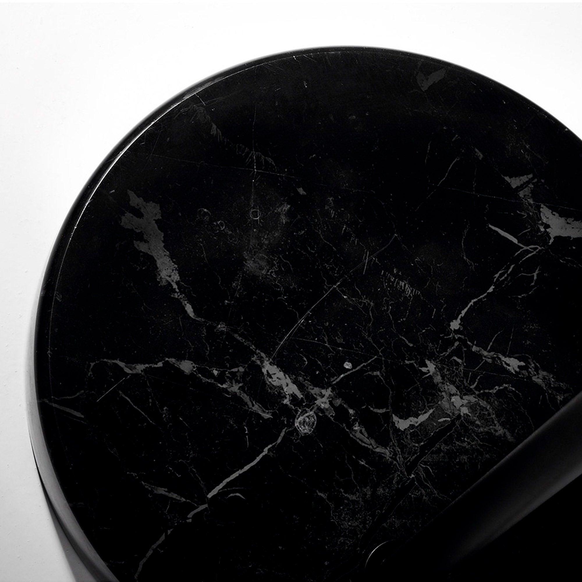 Vsadťe vše na bílou. Stojací lampa May s bílým lakovaným ocelovým ramenem, spočívající na základně z bílého mramoru, s jedinečnými tvary v každém exempláři, a kulatým stínidlem pokrytým bílou bavlněnou tkaninou.