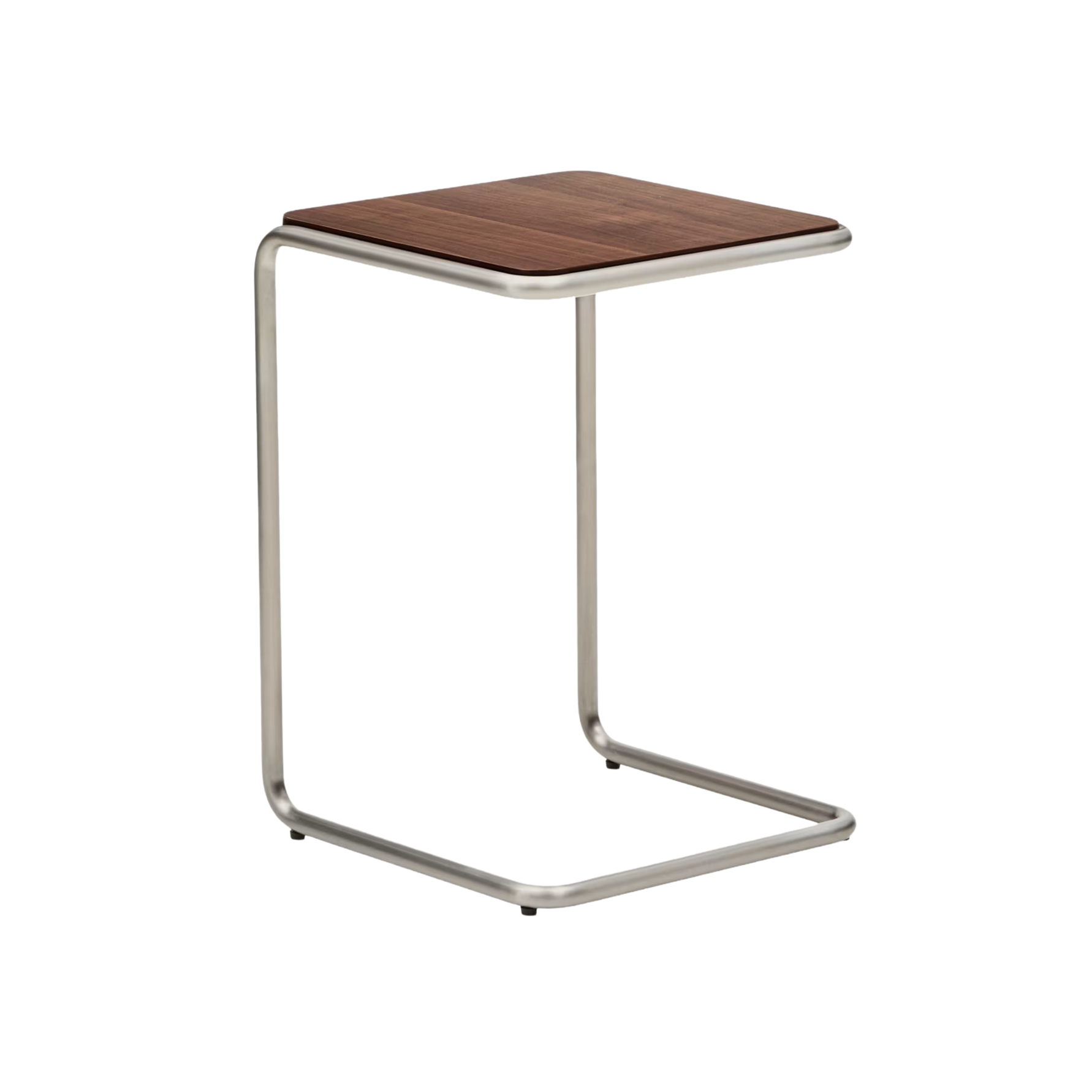 Boční stolek TARSEL tmavě hnědý ořechový dýhovaný se ocelovým podstavcem
