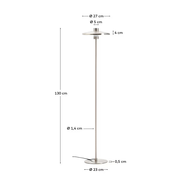 Stojací lampa Nuvira je designovým akcentem, který do interiéru vnáší jemnou eleganci a nadčasový styl. Její štíhlá forma z kartáčované oceli s povrchovou úpravou proti otiskům prstů okouzluje moderním charakterem, a zároveň se snadno udržuje v čistotě. Geometrický stínidlo inspirované vintage stylem dodává sofistikované kouzlo, díky čemuž lampa Nuvira se stane výjimečnou ozdobou obývacího pokoje, ložnice nebo čtecího koutku.