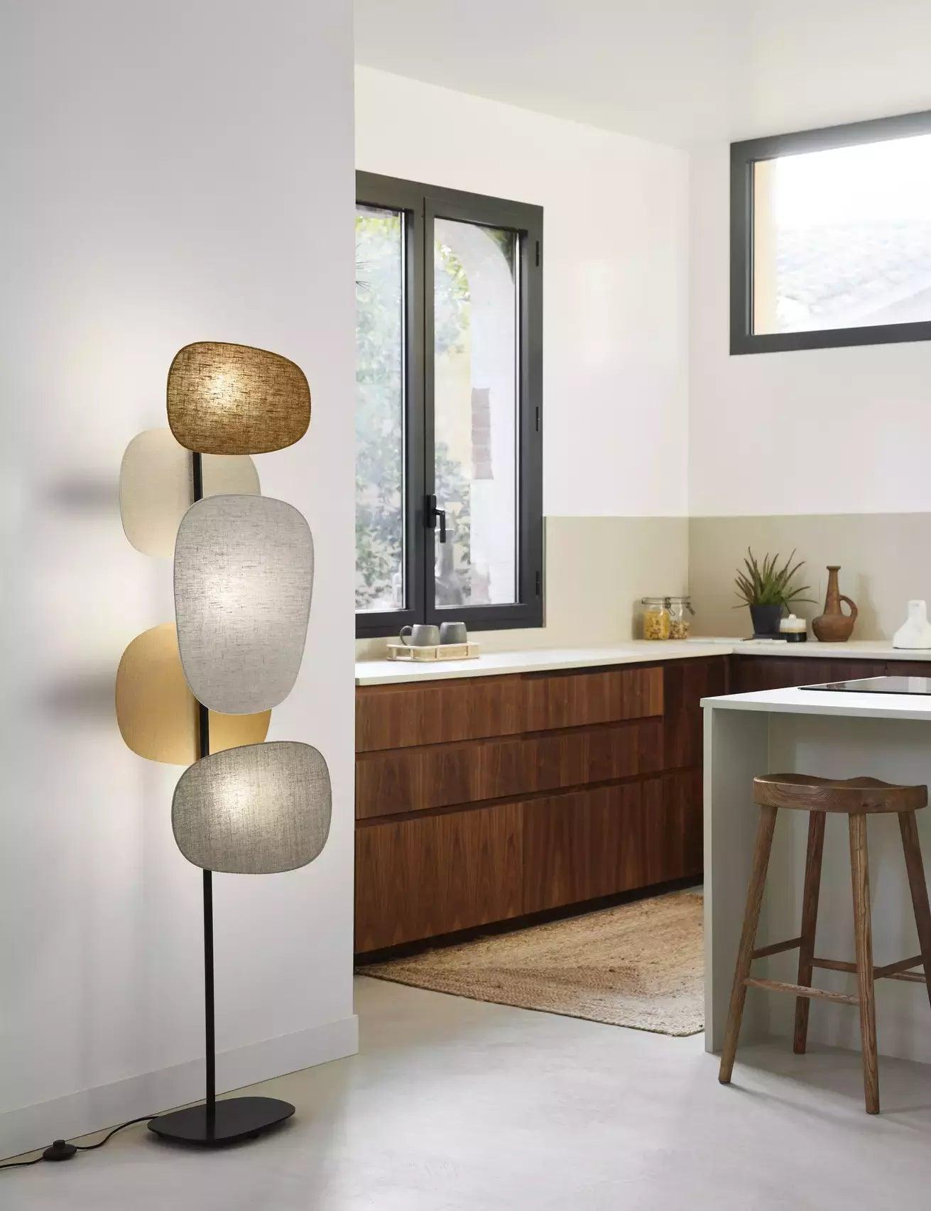 Pět obrazovek z lněného materiálu dodává lampě neobyčejný vzhled, jemně rozptyluje světlo a vytváří příjemnou atmosféru v místnosti. Není to jen praktický zdroj světla, ale také designový dekorační prvek, který dodává každému interiéru jedinečný charakter.