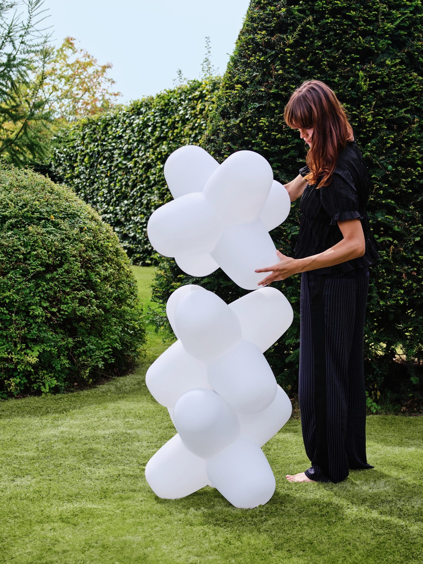Přenosná lampa Jack je návratem ikonického designu v moderním a ještě funkčnějším provedení. Navržena s ohledem na volné používání jak uvnitř, tak venku, okouzluje lehkostí, mobilitou a charakteristickou, sochařskou formou. Matný bílý stín jemně rozptyluje světlo, vytváří měkké, příjemné osvětlení, ideální pro budování atmosféry na terase, v zahradě nebo v obývacím pokoji.
