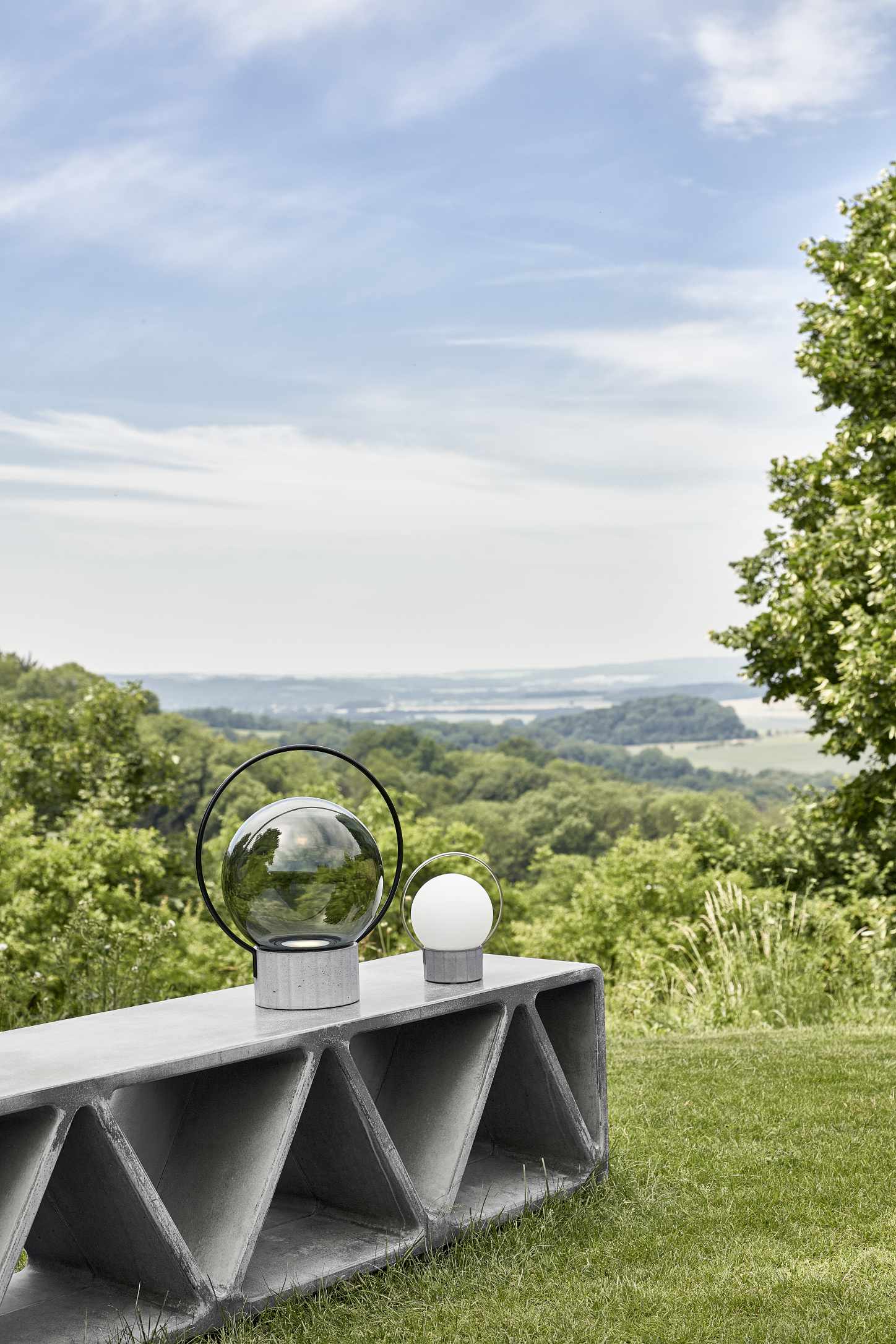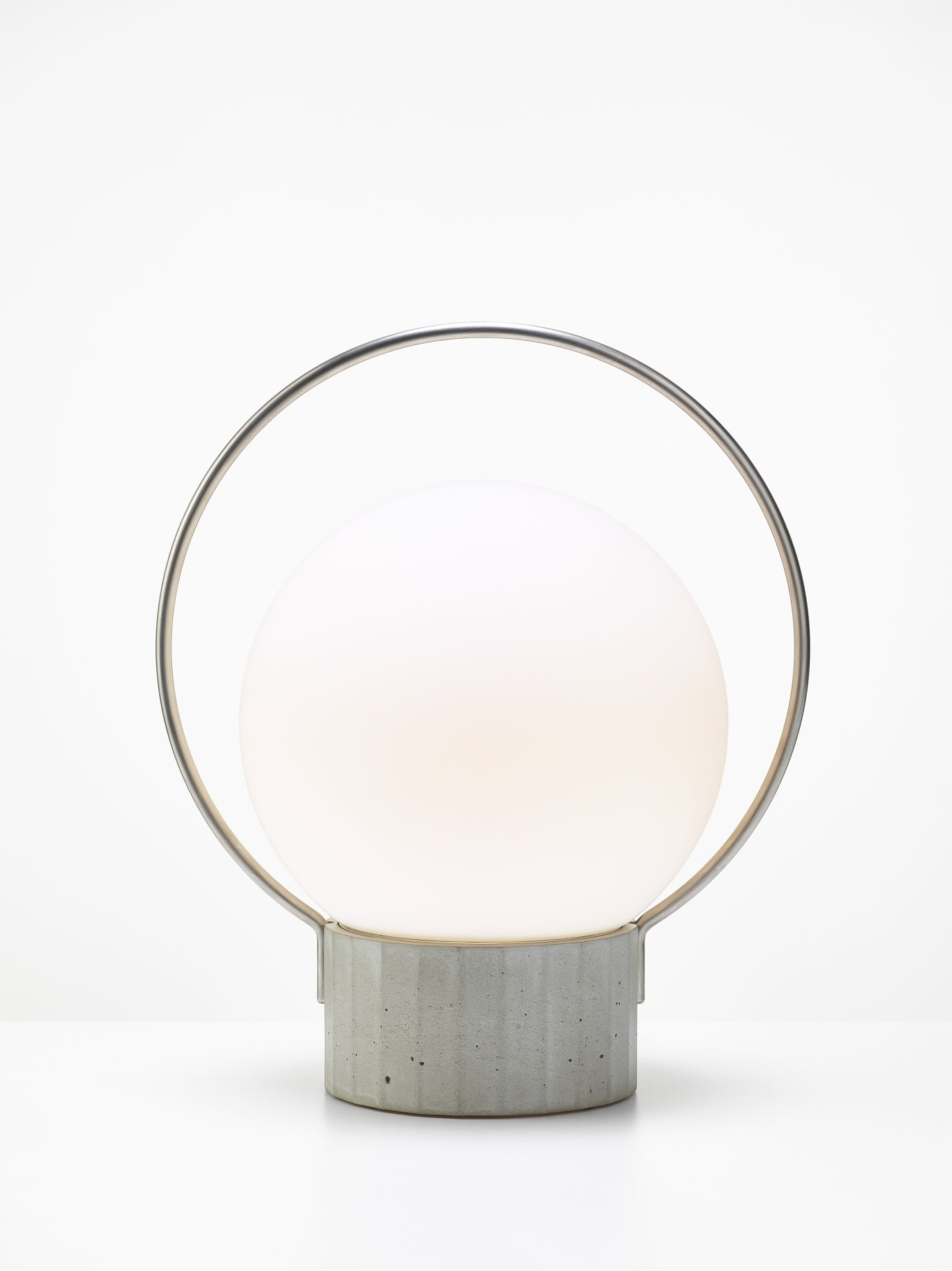 Betonový podstavec ukrývá nabíjecí modul a citlivý dotykový stmívač, který umožňuje regulaci jasnosti. Díky ochraně IP44 je lampa bezpečná pro venkovní použití. Lampa Sfera Portable spojuje ručně foukané sklo s betonovým podstavcem, čímž vytváří stylový, atmosférický osvětlení vhodné jak do moderních, tak historických prostor. Je snadno přenosná, což umožňuje rychlou změnu atmosféry kdekoli.