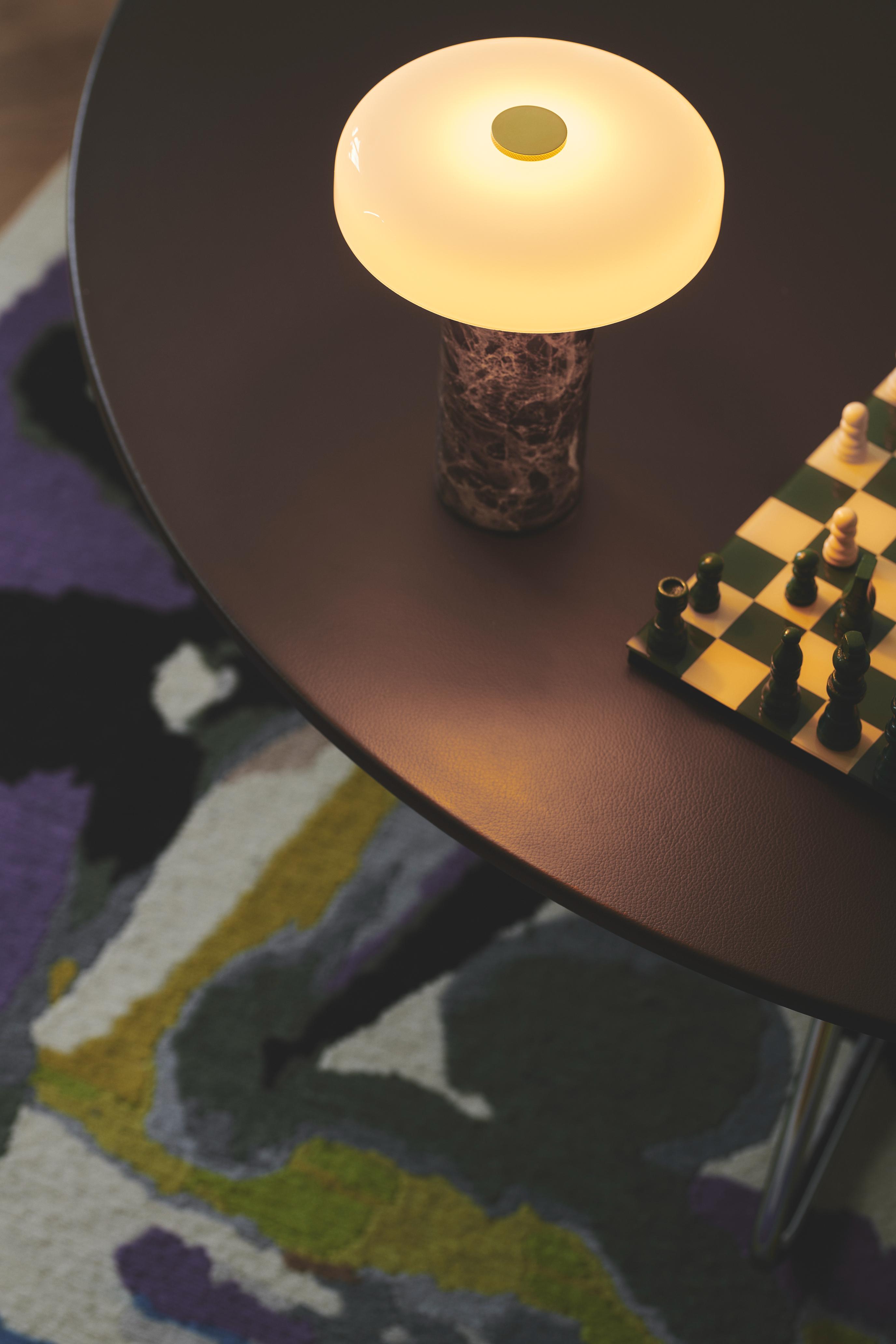 Vyrobená z leštěného mramoru a ručně foukaného skla, lampa Trip spojuje přírodní materiály s pečlivě zpracovanými detaily. Je vybavena dotykovým, tříúrovňovým stmívačem, díky čemuž snadno přizpůsobíte intenzitu světla situaci – od intimního večera po funkční osvětlení během setkání. Dlouhá výdrž baterie a pečlivé zpracování činí přenosnou lampu Trip praktickým zdrojem světla i stylovým dekorativním doplňkem.